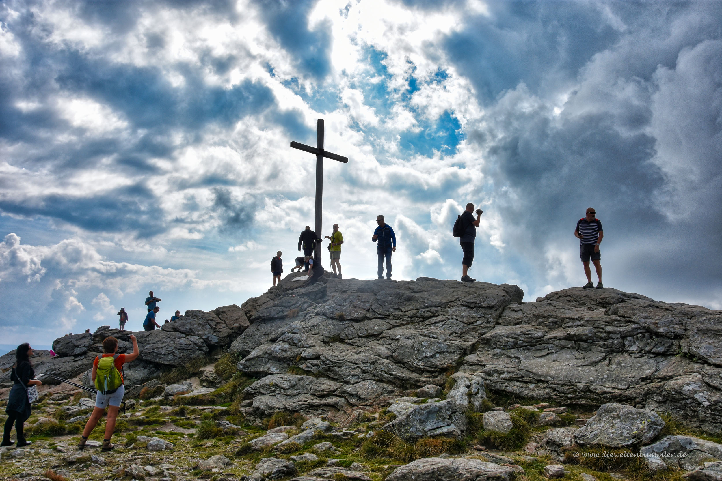 Der Weg hinauf war nicht wirklich anspruchsvoll, nur fordernd im Sinne von bergauf gehen. Unterwegs kam uns ein Pärchen entgegen, dass wir unten auf dem Parkplatz gesehen hatten. Sie parkten nämlich genau neben uns und fielen uns dadurch auf, dass sie neben unserem Wagen rauchten und es ihnen offensichtlich egal war, dass ihr Qualm in unser Schlafzimmer zog. Und den Gipfel erreichten sie also auch lieber durch eine Fahrt mit der Seilbahn. Ein bisschen Bewegung hätte ihnen aber gar nicht geschadet. Überraschend fand ich allerdings, wie schnell sie schon wieder auf dem Rückweg waren.