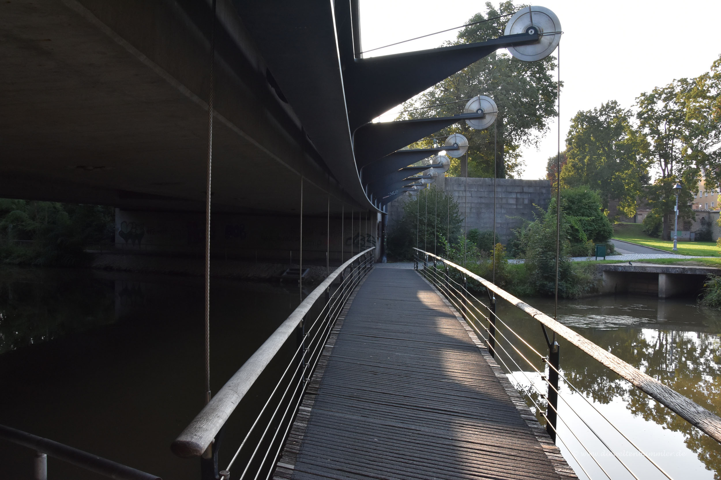 Ein bisschen blöd war nur, dass wir wieder ein ganzes Stück zurück fahren mussten. Denn wir brauchten auch noch ein wenig Bildmaterial aus der Innenstadt von Amberg. Da wir eigentlich vorgehabt hatten, in Amberg zu übernachten und abends ein wenig durch die Altstadt zu schlendern, steuerten wir direkt den Wohnmobilstellplatz an. Dort stellten wir unseren Kastenwagen ab und gingen geradewegs die wenigen Meter in das Zentrum hinein. Aber sowohl die Innenstadt als auch der Wohnmobilstellplatz konnten mich nicht so recht überzeugen. Wobei es gegen die Innenstadt nichts zu meckern gab. Die Kirche direkt am Ufer der Vils war schon etwas besonderes und auch sonst war alles okay. Aber irgendwie hatte ich etwas anderes erwartet. Es fehlte mir das gewisse Etwas.