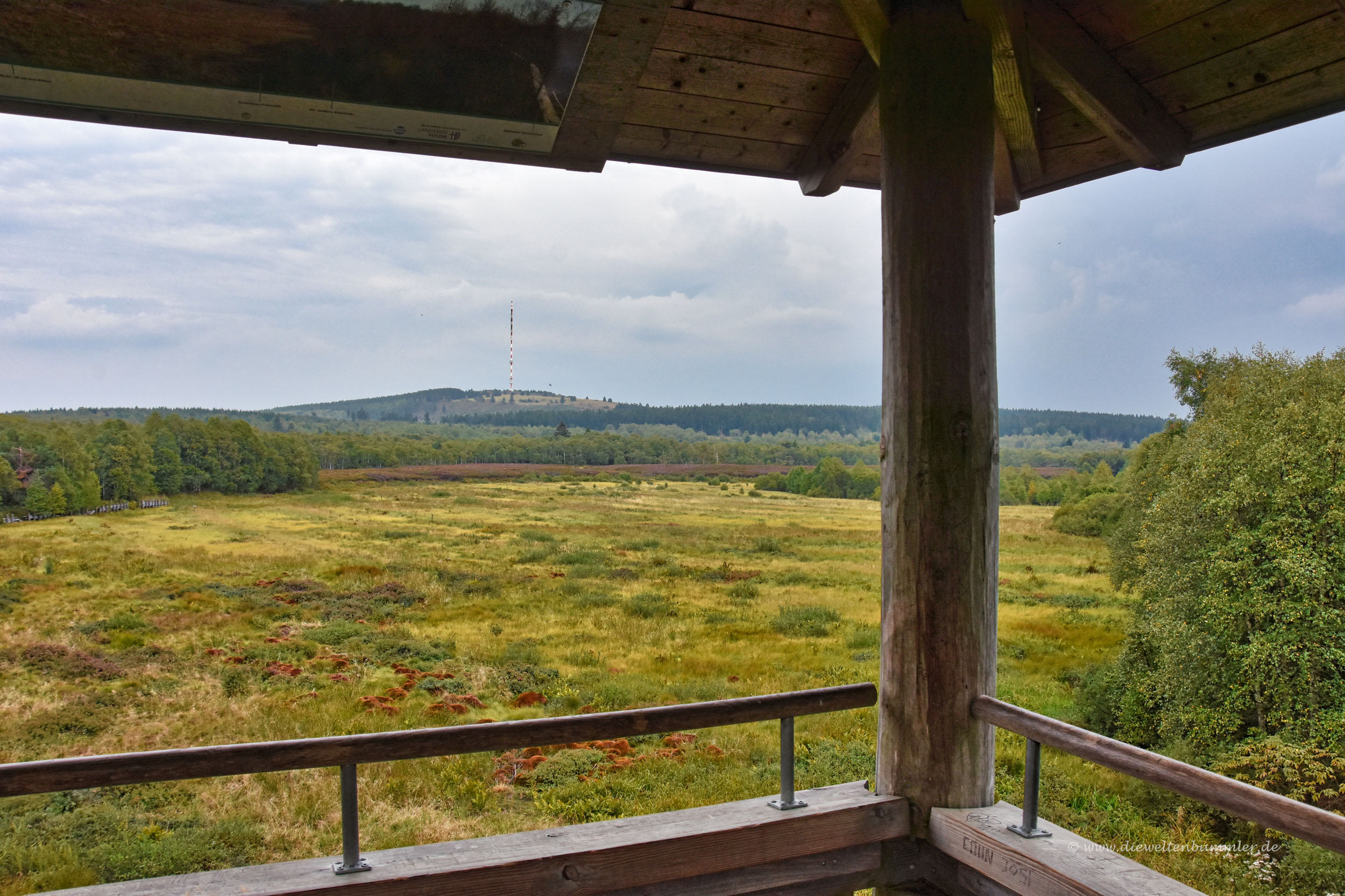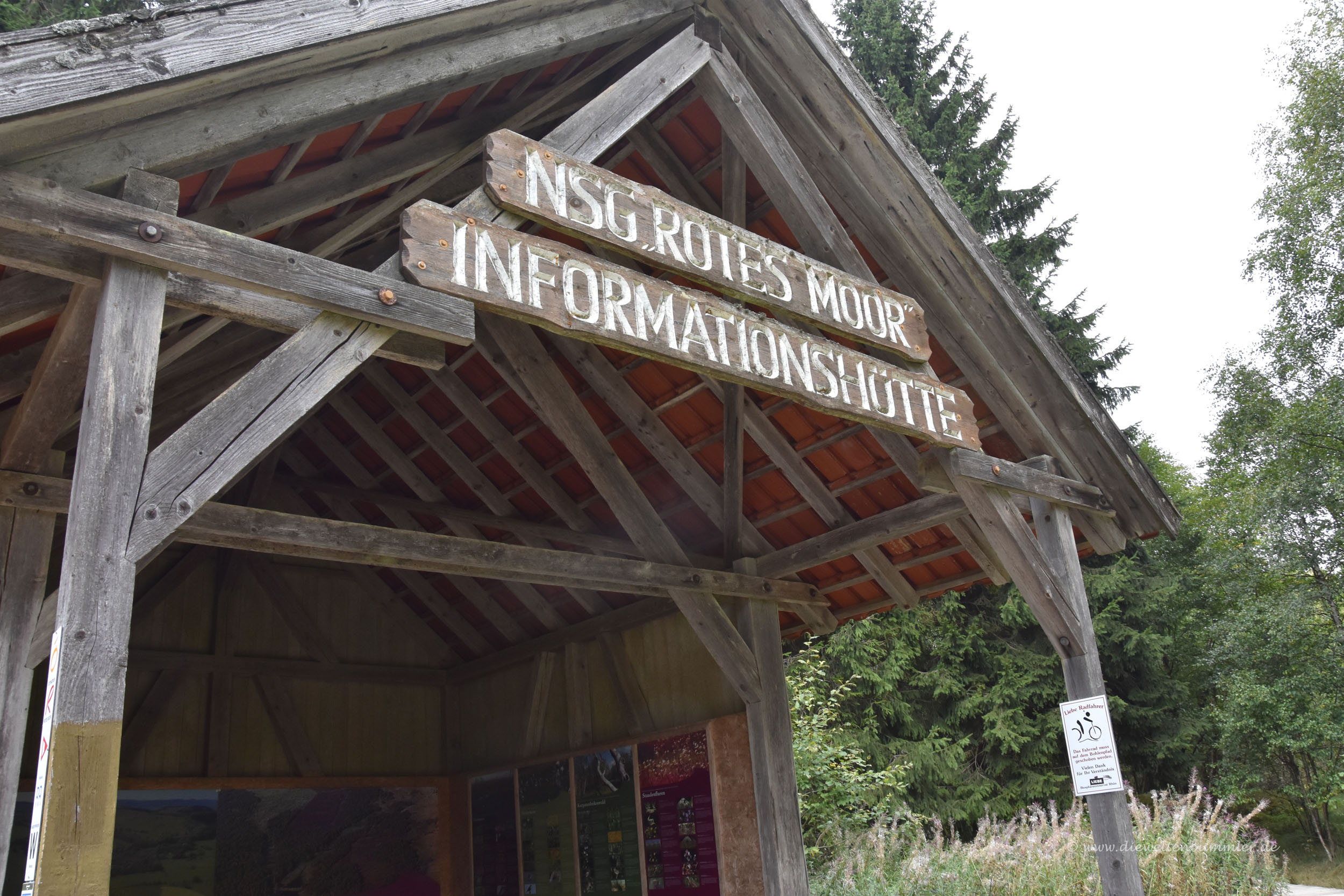 Wir spazierten bis zum Aussichtsturm Rotes Moor und blickten von dort ein wenig herab auf selbiges. Schön war’s aber mittlerweile hatte sich der Himmel schon deutlich zugezogen und in der Ferne war auch Gewittergrollen zu hören. Das trieb uns leider an, ein wenig flotter wieder zum Auto zurückzukehren. Wir nahmen denselben Weg, weil wir noch einmal den Holzbohlenpfad genießen wollten. Einen kurzen Blick warfen wir noch in das NABU-Haus, bevor wir dann schließlich weiter fuhren.