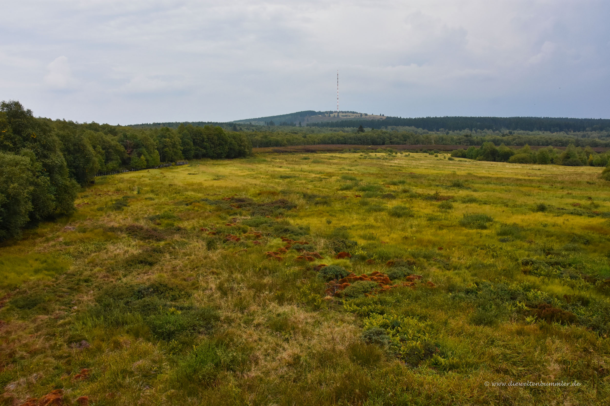 Doch zwischen Kreuzberg und Wasserkuppe befindet sich noch das Rote Moor und da freuten wir uns sowieso schon länger drauf. Endlich mal wieder eine Moorlandschaft, ganz so wie im Hohen Venn, wo wir ja auch immer wieder mal hinfahren und wandern gehen. Am NABU-Haus ließen wir das Wohnmobil stehen und spazierten auf direktem Weg zum Moor. Wir freuten uns, dass wir endlich mal wieder auf einem Holzbohlenweg wandern konnten. Hatten wir zwar erst in der Woche zuvor im Schwarzwald am Hohlohturm, aber das gefällt uns immer wieder gut. Wobei so ein Holzbohlenweg natürlich kein richtiger Wanderweg ist, sondern eher ein Spazierpfad. Diese Wege sind ja ansonsten recht anspruchslos. Aber manchmal tut genau das ja auch mal gut.
