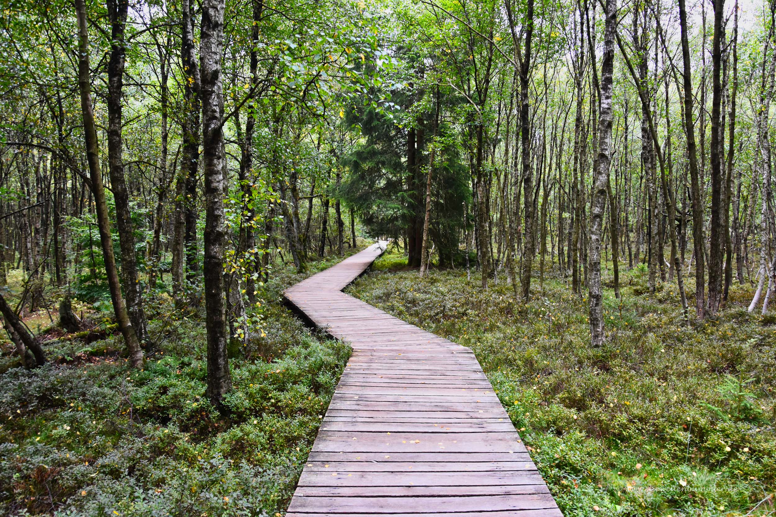 Über Holzbohlen durch das Rote Moor