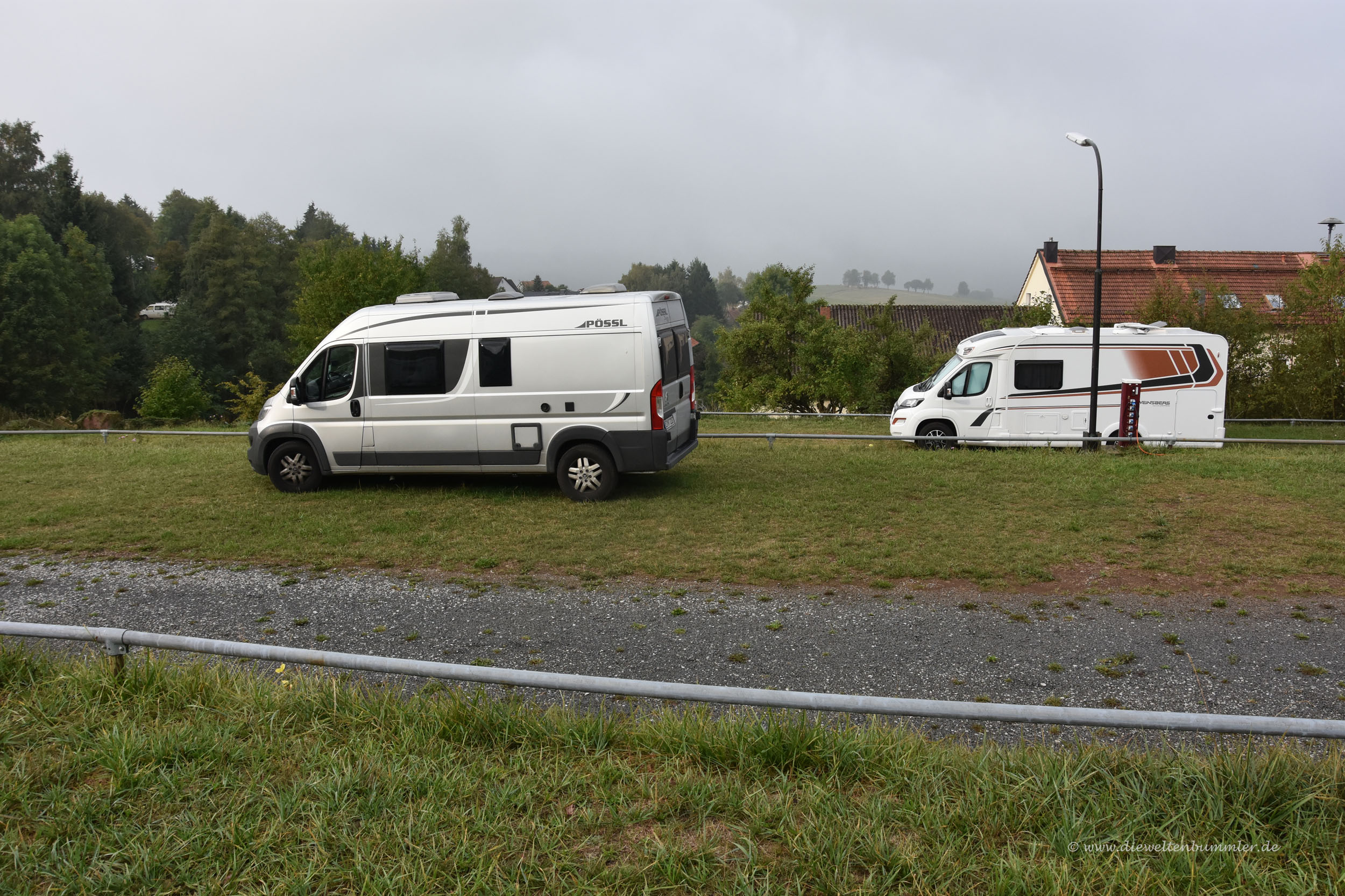 Als wir am Stellplatz ankamen, haben wir schnurstracks gewendet. Es war nur noch ein Platz frei und zwar ganz vorne direkt an der Entsorgungsstation. Alle Fahrzeuge standen sehr eng beieinander und gleich nebenan tobte der Bär auf dem benachbarten Sportplatz. Wir hatten kein Interesse mehr an diesem Stellplatz. Aber wir hatten noch eine Alternative und zwar ein Stellplatz, der zu einem Campingplatz in Gersfeld gehört. Die Bewertungen waren nicht so vielversprechend, aber wenn das der Platz war, an dem wir gerade eben vorbeigefahren sind, dann sah das gar nicht so schlecht aus.