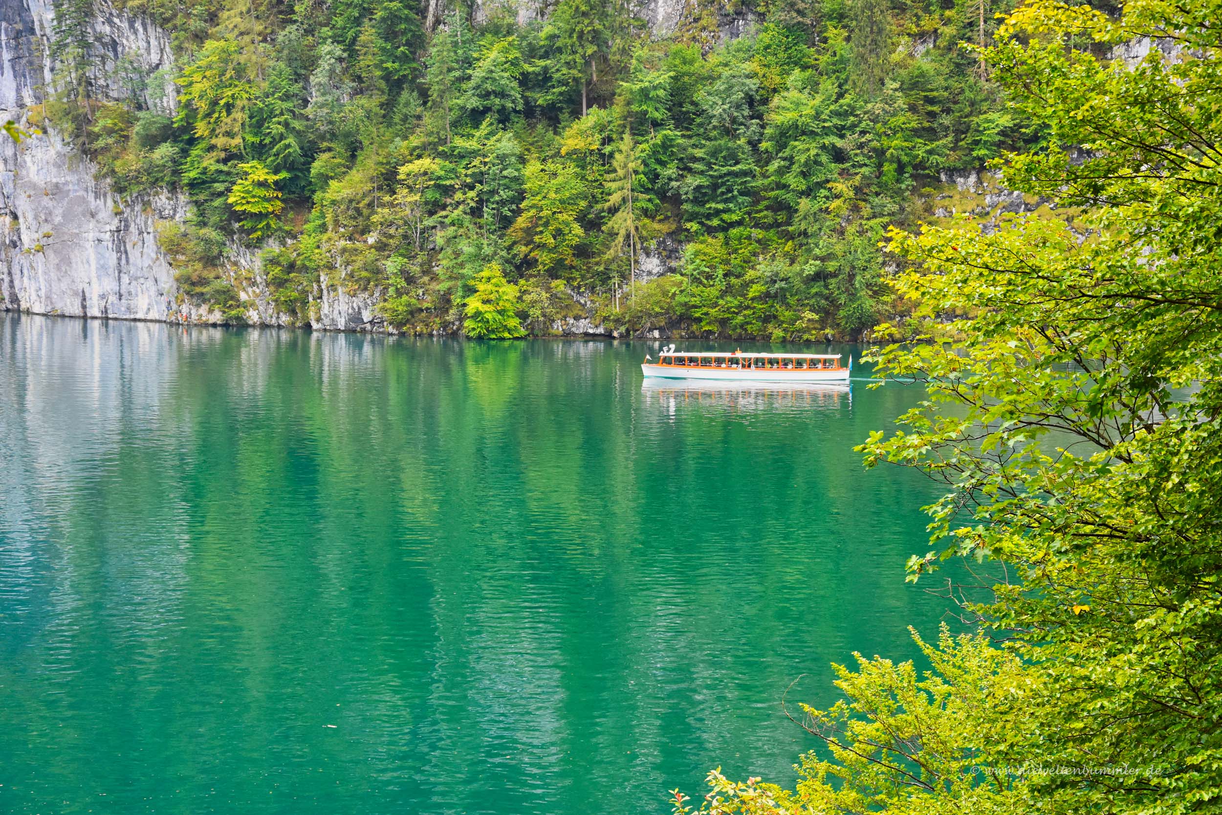 Trotz der Wetterlage fuhren wir zum Königssee. Immerhin waren wir jetzt einmal hier und wir hatten Hoffnung, dass man zumindest dort ein paar schöne Detailfotos machen konnte. Außerdem wollten wir den Königssee selber mal kennen lernen. Nachdem wir den Wagen auf dem überdimensionalen Parkplatz abstellten, spazierten wir die kleine Straße mit zahlreichen anderen Touristen entlang zum Ufer des Sees.