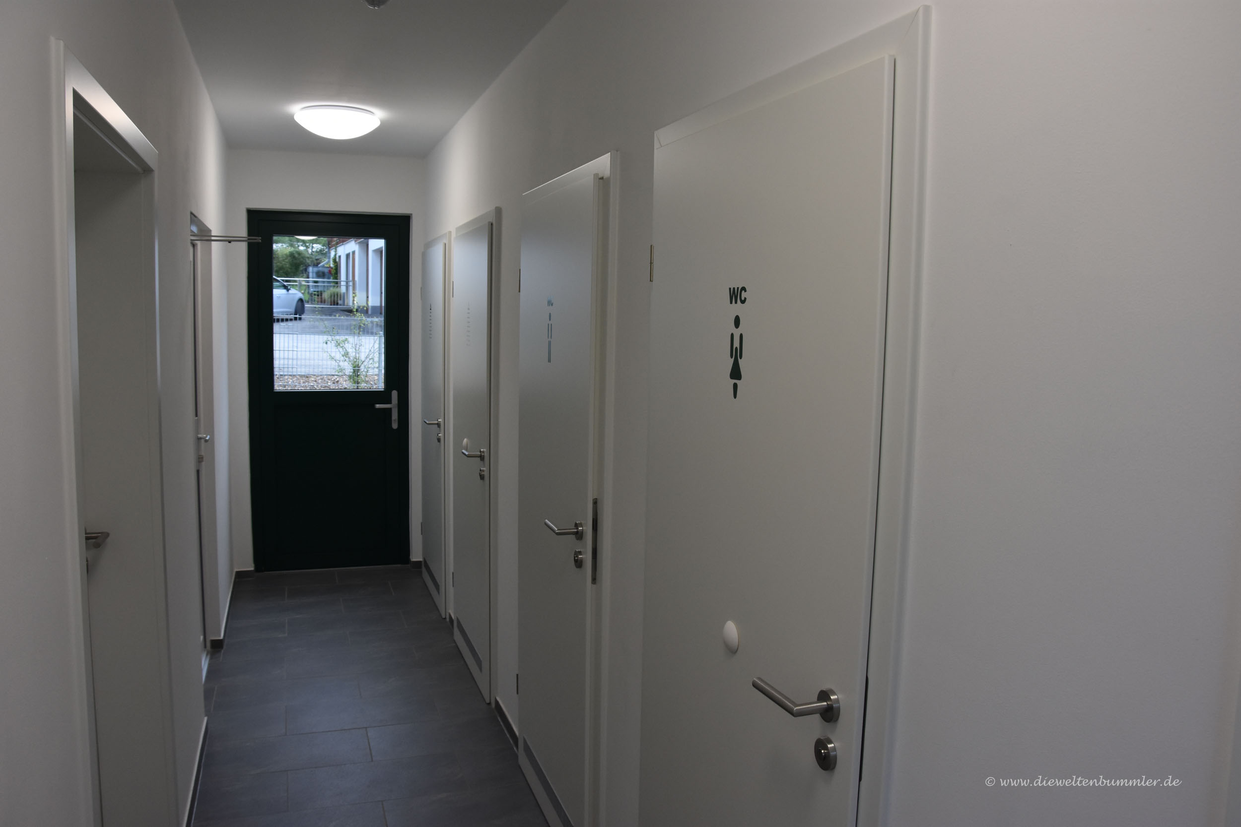 Wir schauten uns noch ein wenig um, warfen einen Blick in das Sanitärgebäude und fühlten uns im Inneren des Hauses bestätigt. Dort schien ein ziemlicher Renovierungsstau entstanden zu sein. Es war zwar alles sauber und ordentlich, doch die Einrichtung war definitiv nicht mehr zeitgemäß. Nachdem wir irgendwann mal den Lichtschalter fanden und auch einen Blick auf das Schwarze Brett warfen, erwarteten wir eigentlich irgendwelche Infozettel oder Plakate aus dem letzten Jahrhundert. Na gut, zumindest das war nicht so.