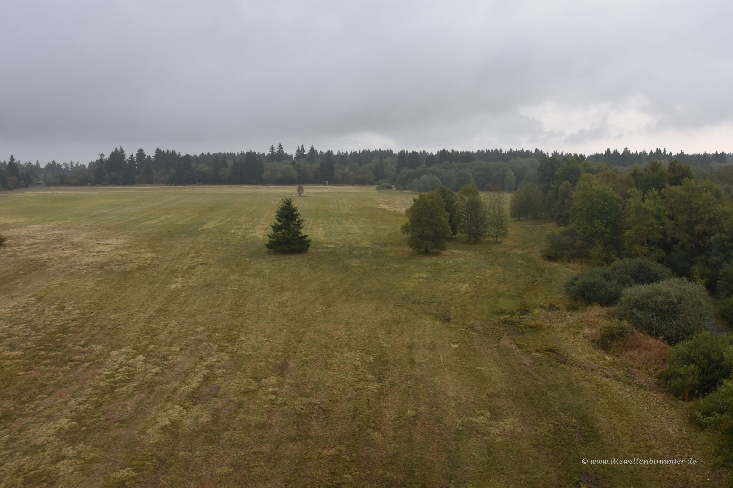 Aber es lohnte sich, so wie sich jeder Rundgang durch ein Moor lohnt. Sehr schön. Wieder am Parkplatz angekommen, gingen wir dort an unserem Wohnmobil vorbei in die andere Richtung. Denn nur wenige hundert Meter entfernt, befindet sich dort die ehemalige deutsch-deutsche Grenze. Wir wollten uns den dortigen ehemaligen Grenzturm anschauen und erreichten ihn nach wenigen Augenblicken.