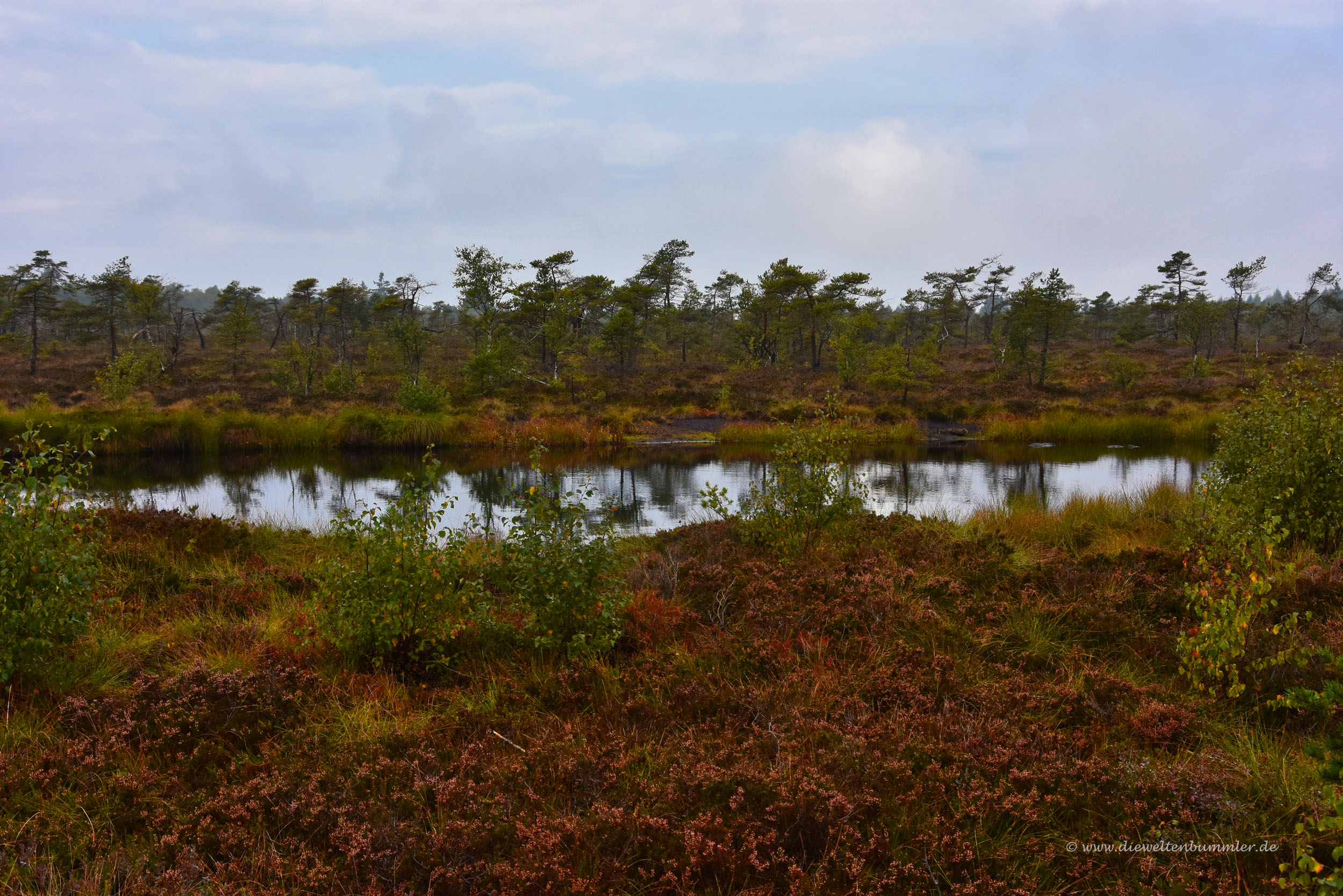 Auch am heutigen Morgen stand eine kleine Wanderung in einem Moor auf dem Programm. Denn nach dem Roten Moor vom Vortag besuchten wir nun das Schwarze Moor, nicht allzu weit entfernt. Wir waren einer der Ersten, die dort auf dem Besucherparkplatz parkten, doch wir waren nicht die Einzigen. Auf dem hinteren Teil des Parkplatzes standen zwei Wohnmobile, die ganz offensichtlich dort übernachteten. Hm, an einem Naturschutzgebiet in einem Biosphärenreservat? Kein Wunder, dass Wohnmobile immer seltener gerne gesehen werden.