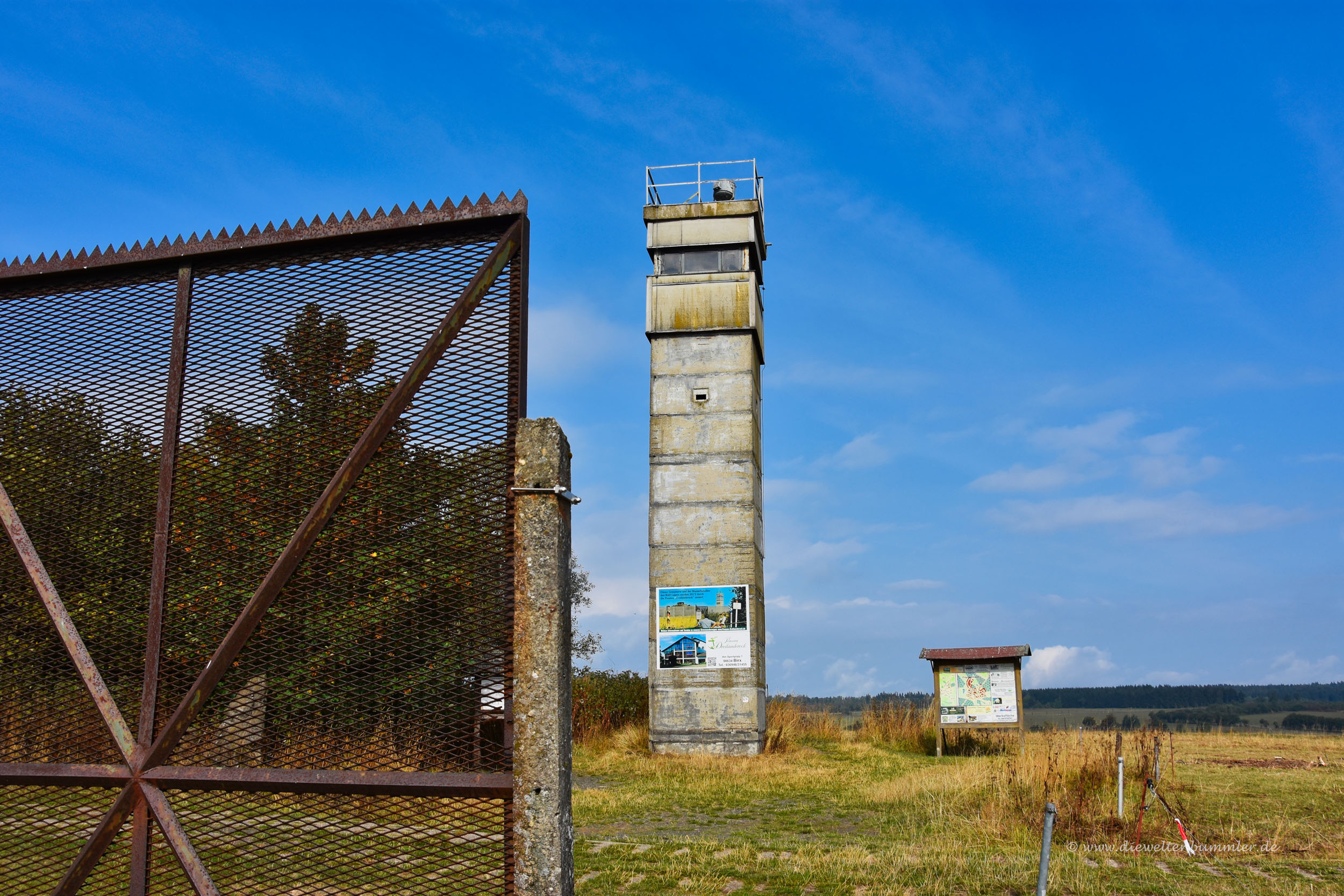 In dem Moment als wir am Turm ankamen, fiel es mir wie Schuppen von den Augen: Hier war ich schon einmal. Im Jahr 1992 stand ich hier mit einem Schulfreund, als wir in der Gegend unterwegs waren. Damals hatten wir noch die Möglichkeit, mit einem Pkw direkt bis zum Grenzturm zu fahren. Und das Stück Zaun, das dort jetzt als Gedenkstätte steht, gab es damals nicht. Kurz nach der Wende hatte man alles weitgehend entfernt und das Stück wohl anschließend wieder als sichtbares Mahnmal aufgestellt.