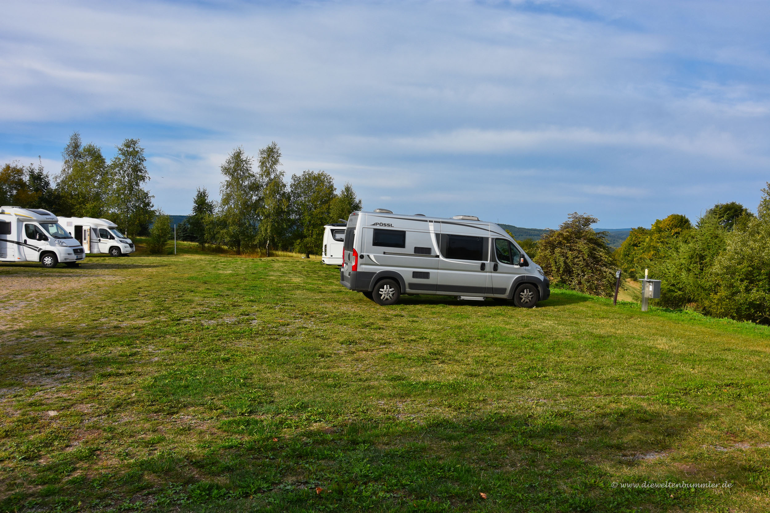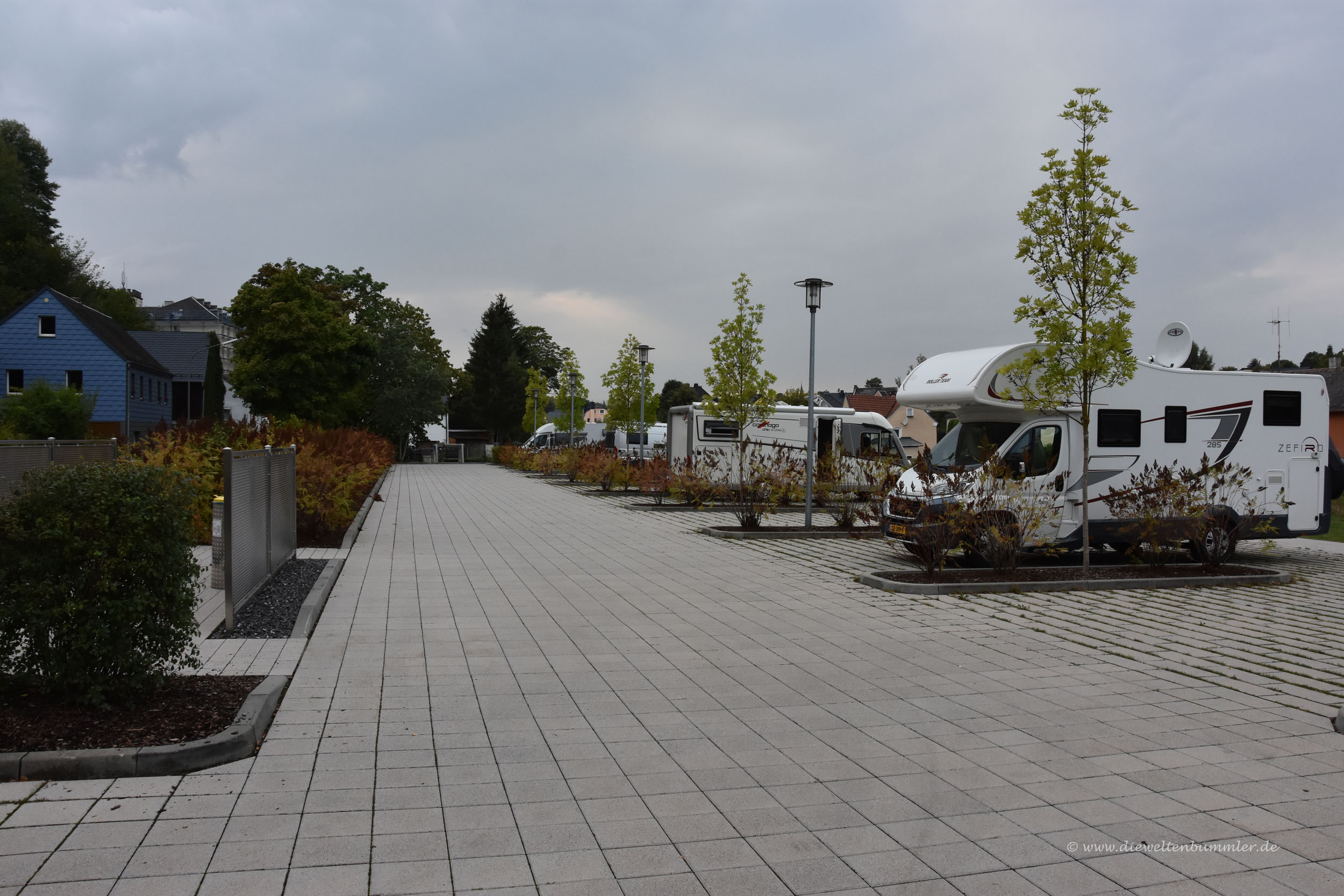 Erfreut waren wir auch darüber, dass wir einen Wohnmobilstellplatz in Schwarzenbach an der Saale vorfanden. Doch der war so seltsam angelegt, dass mit Wohlwollen und viel Kurbelei allerhöchstens zwei normalgroße Wohnmobile hintereinander hineinpassen würden. Zum Parken war das kein Problem für uns, aber übernachten wollten wir so zentral im Ort dann auch nicht unbedingt.