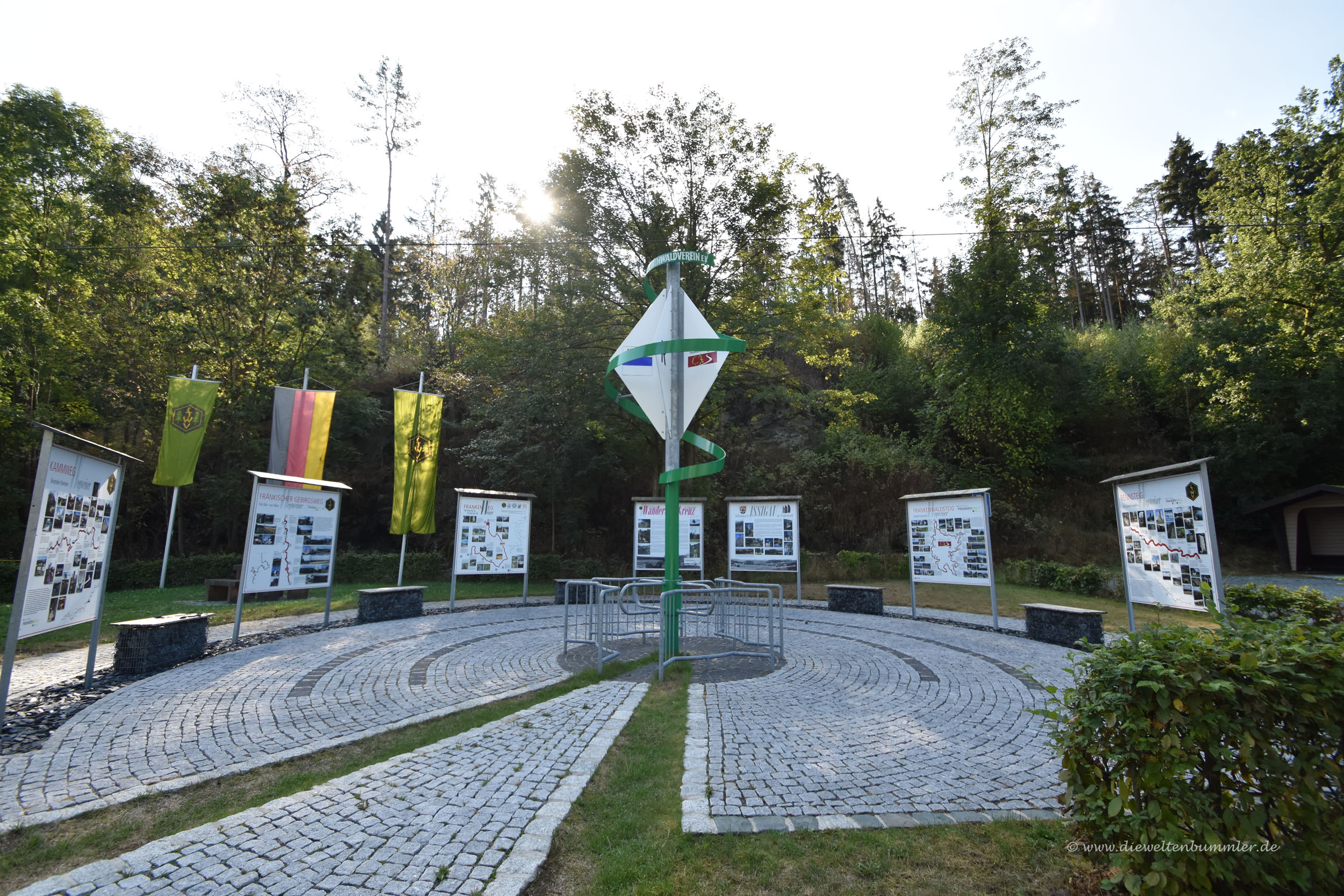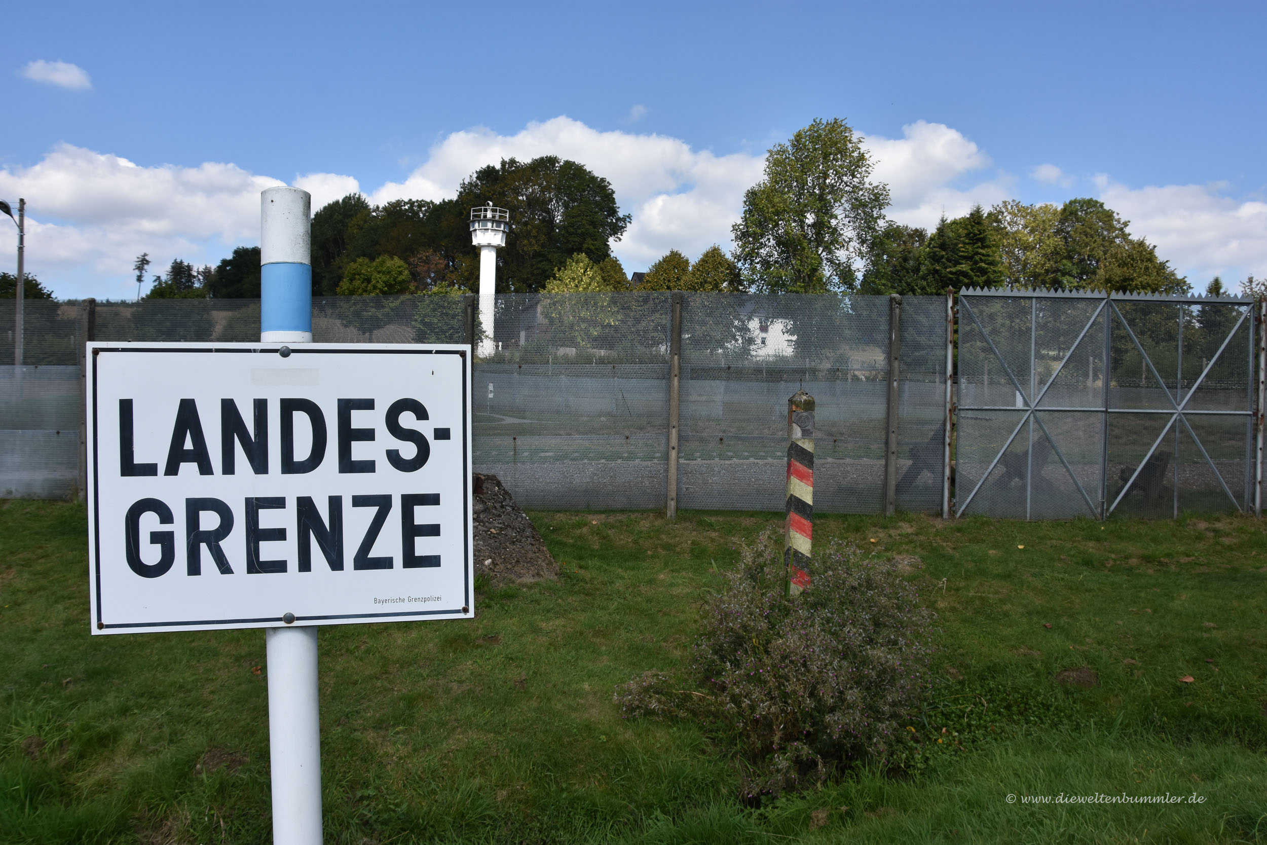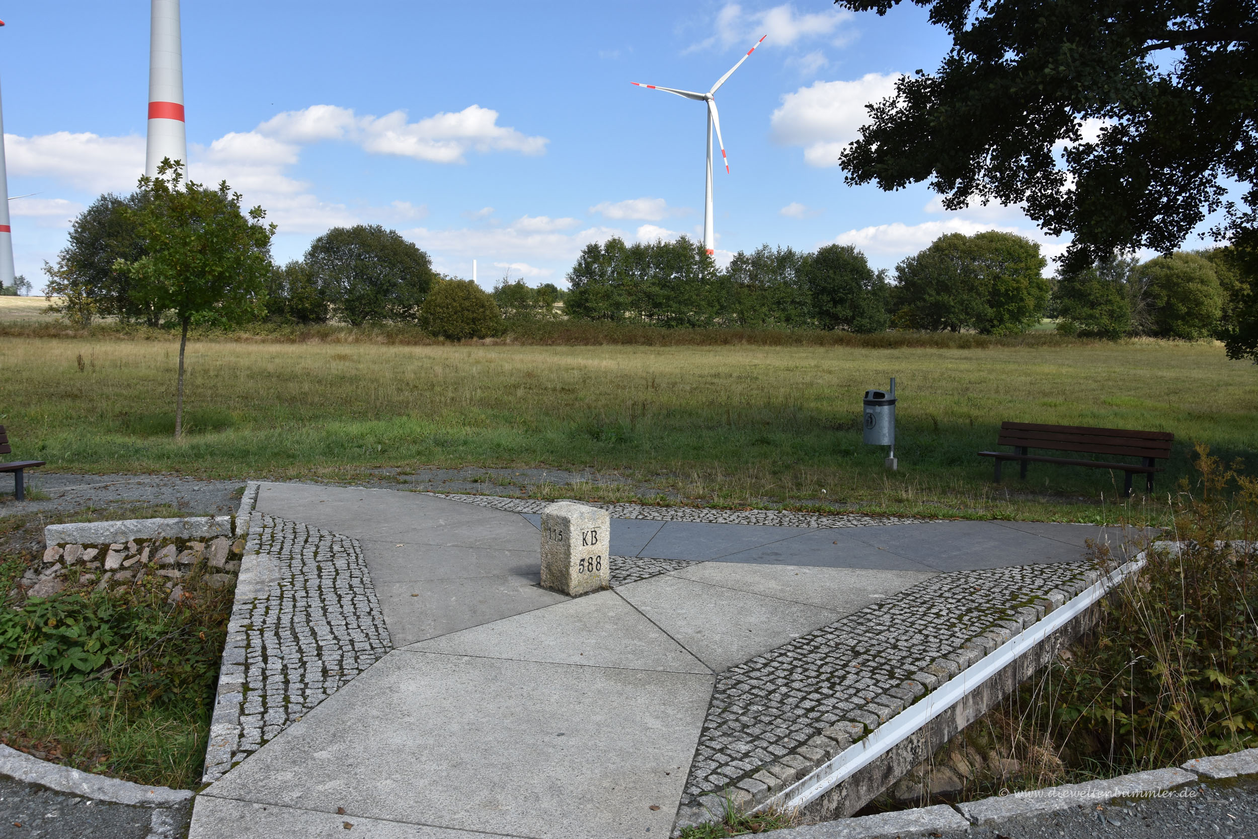 Denn da wir Dreiländerecke sammeln, ließen wir uns das nicht entgehen, wo die drei Bundesländer bzw. Freistaaten Bayern, Thüringen und Sachsen aufeinander treffen. Nach diesem kurzen Besuch fuhren wir in Richtung Hof, wo ein ehemaliges Dreiländereck auf uns wartete. Denn bis zur politischen Wende trafen östlich der Stadt die Länder Tschechoslowakei, DDR und BRD aufeinander. In dieser Form gibt es das Dreiländereck zum Glück nicht mehr, aber drei verschiedene Verwaltungseinheiten treffen trotzdem hier noch zusammen. Aus der Tschechoslowakei wurde Tschechien und aus der DDR wurde zumindest an dieser Stelle das Bundesland Sachsen. Die Markierung für dieses ehemalige Dreiländereck schauten wir uns natürlich auch an.