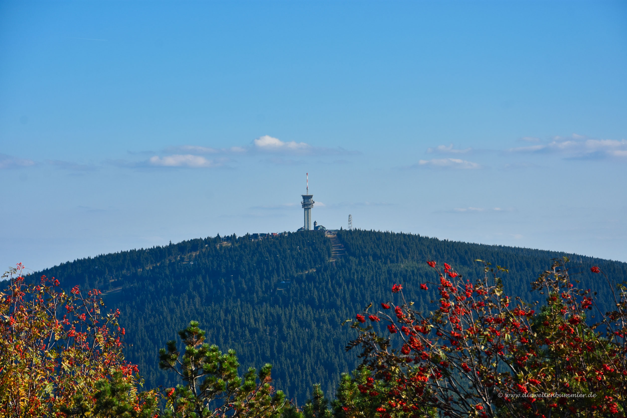 Damit waren wir endgültig in Sachsen angekommen und lernten nun das Erzgebirge ein wenig mehr kennen. Einen ehemaligen Grenzturm passierten wir noch und einen Blick warfen wir die Talsperre Carlsfeld bevor wir zum eigentlichen Ziel fuhren. Der höchste Berg Sachsens stand nämlich auch auf dem Programm und der Fichtelberg macht es einem dabei nicht sonderlich schwer. Über eine einfache Straße kommt man problemlos hinauf auf den Fichtelberg, was ich in dieser leichten Form gar nicht so sehr erwartet hatte.