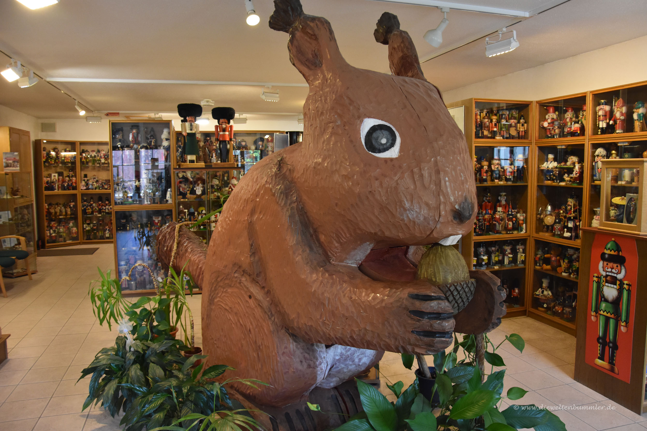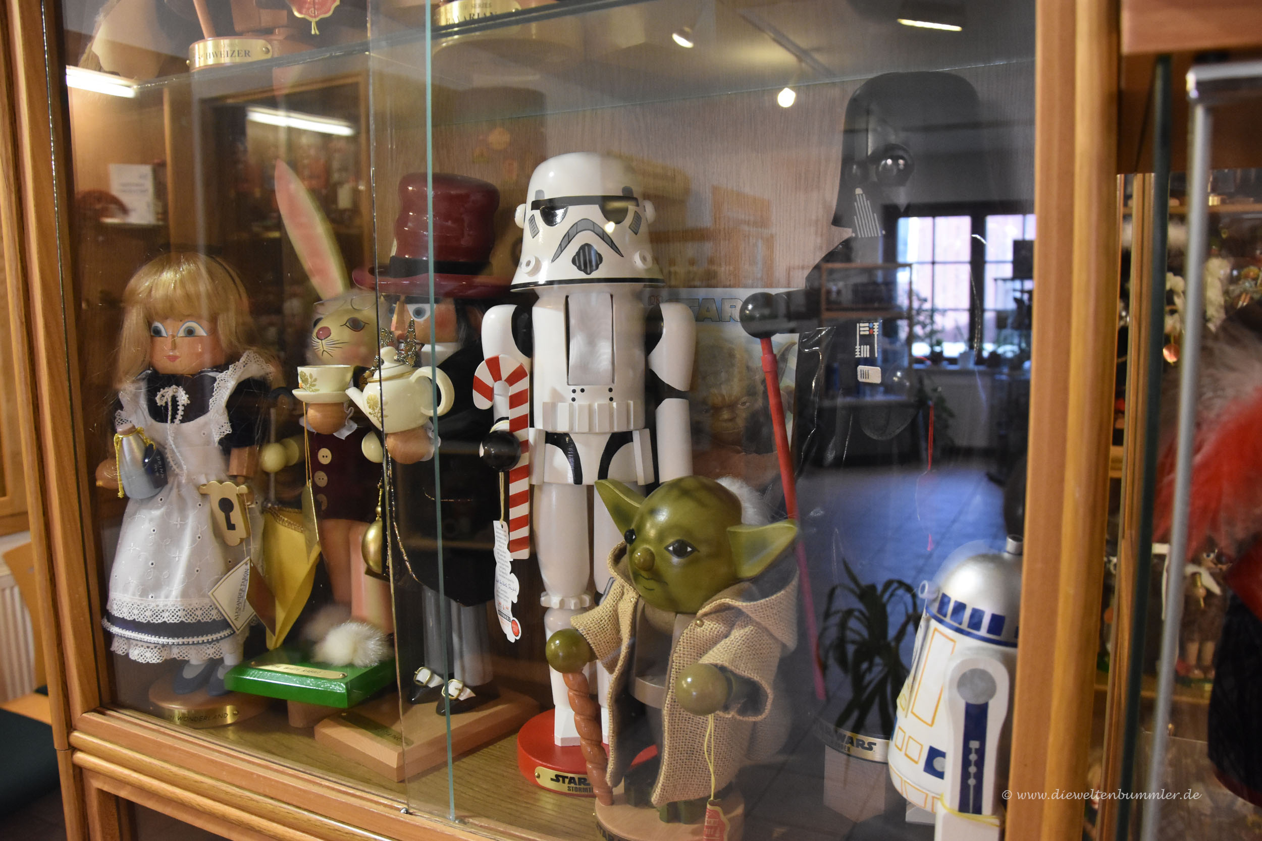 Daher hätte uns irgendwie leid getan, wenn wir nicht wenigstens auch einen Blick in das Museum geworfen hätten. Wir würden überaus freundlich begrüßt und man machte uns darauf aufmerksam, dass dort gleich zur nächsten vollen Stunde die größte Spieldose der Welt mit der Nussknackersuite zu spielen beginnen würde. Na, das durften wir uns doch nicht entgehen lassen. Also gingen wir als Erstes zum Innenhof und warteten darauf, dass sich die Spieldose öffnet und anfängt zu spielen. Irgendwie niedlich. Gleich darauf machten wir noch einen Rundgang durch das technische Museum in der alten Stuhlfabrik, das zum Nussknackermuseum gehört und zum Schluss schlenderten wir noch durch die wirklich große und umfangreiche Nussknacker-Ausstellung. Es war eine gute Entscheidung, das einfach mal gesehen zu haben.
