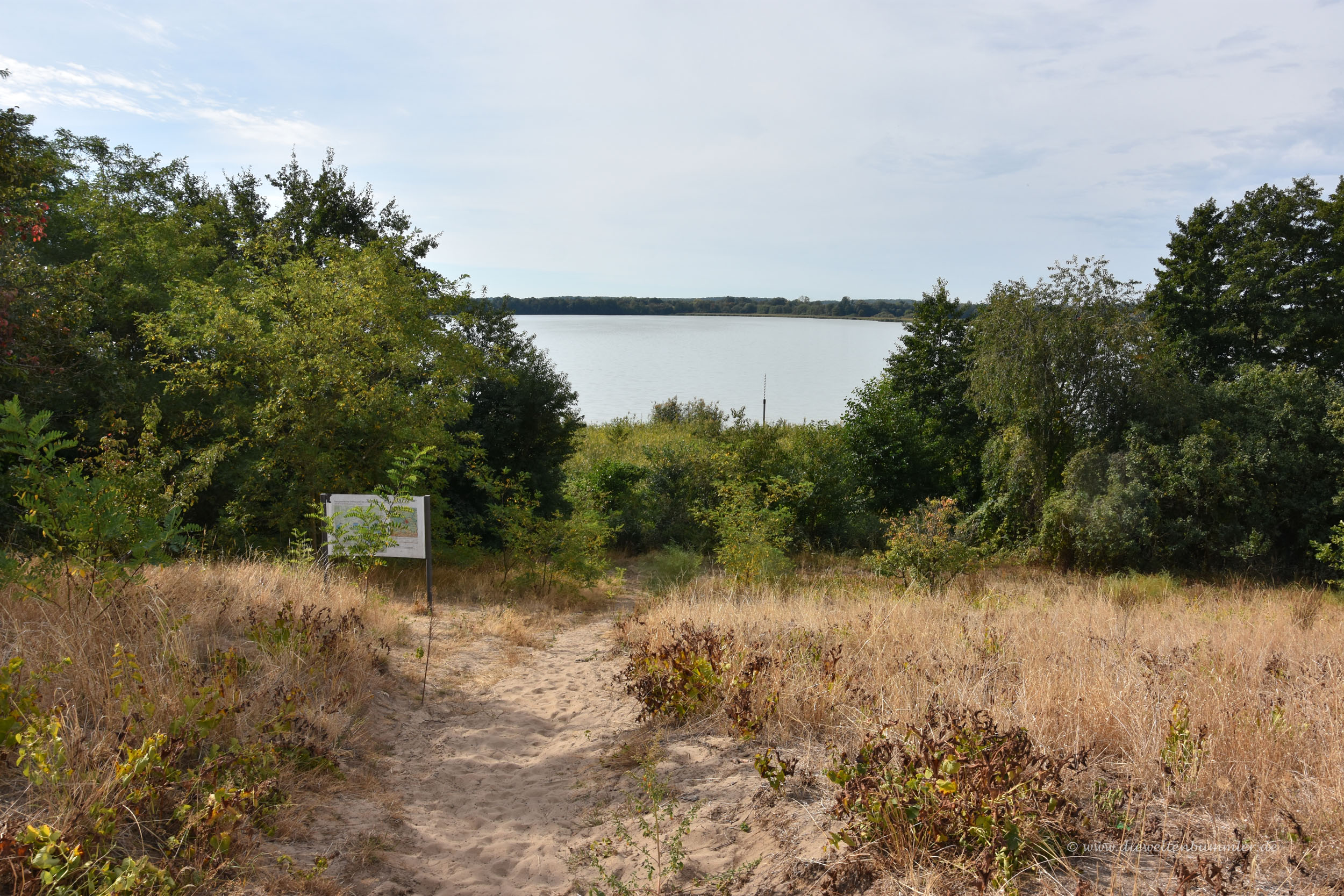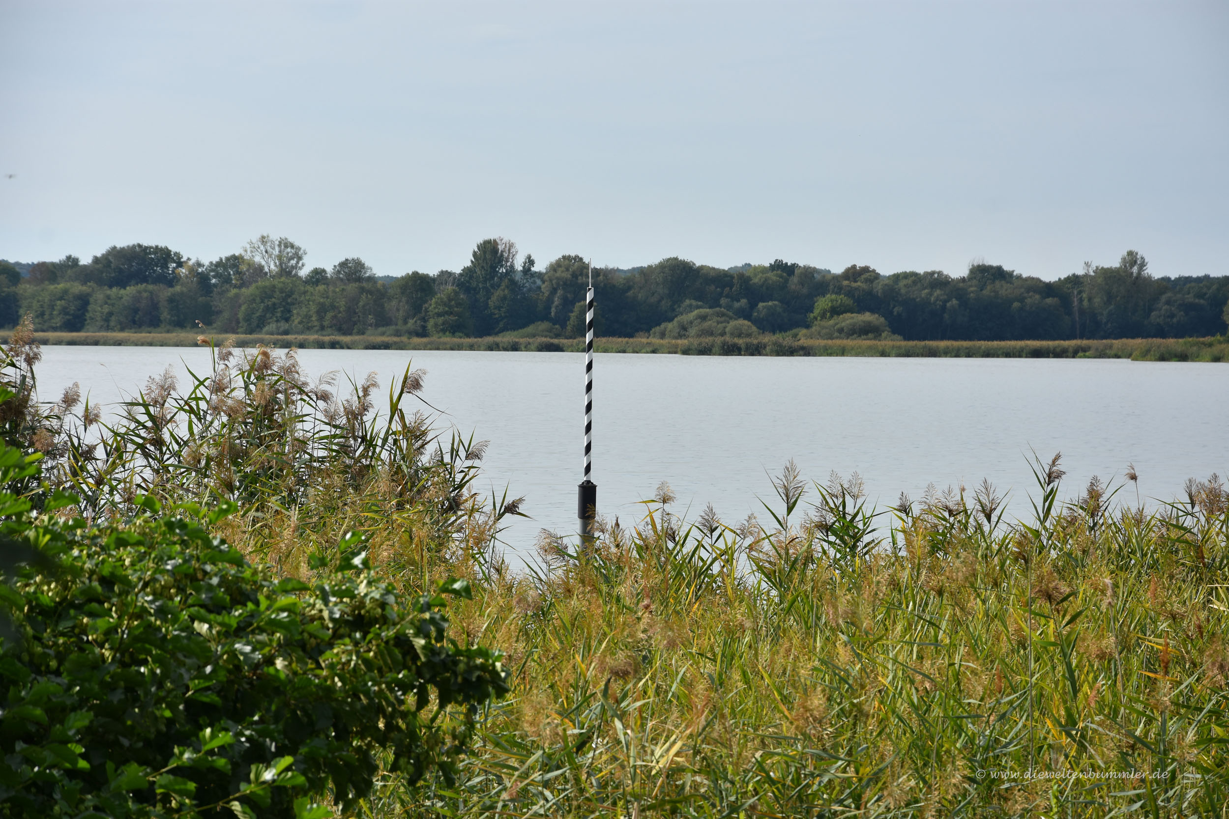 Nach dieser unschönen Begegnung gingen wir zum Ufer, spazierten am selben ein Stück weiter bis wir den geografischen Mittelpunkt von Brandenburg erreichten. Wir sammeln ja geografische Mittelpunkte und dieser ist der vorletzte der Mittelpunkte der deutschen Flächenbundesländer. Es fehlte jetzt nur noch das Saarland. Schade nur, dass wir den Mittelpunkt nicht umrunden konnten, wie wir es sonst machen. Denn der geografische Mittelpunkt von Brandenburg befindet sich mitten im Wasser. Er ist zwar nicht weit vom Ufer entfernt, aber das ist mit Schilf komplett zugewachsen, so dass man sogar nur einen erschwerten Blick zur Markierung hat.