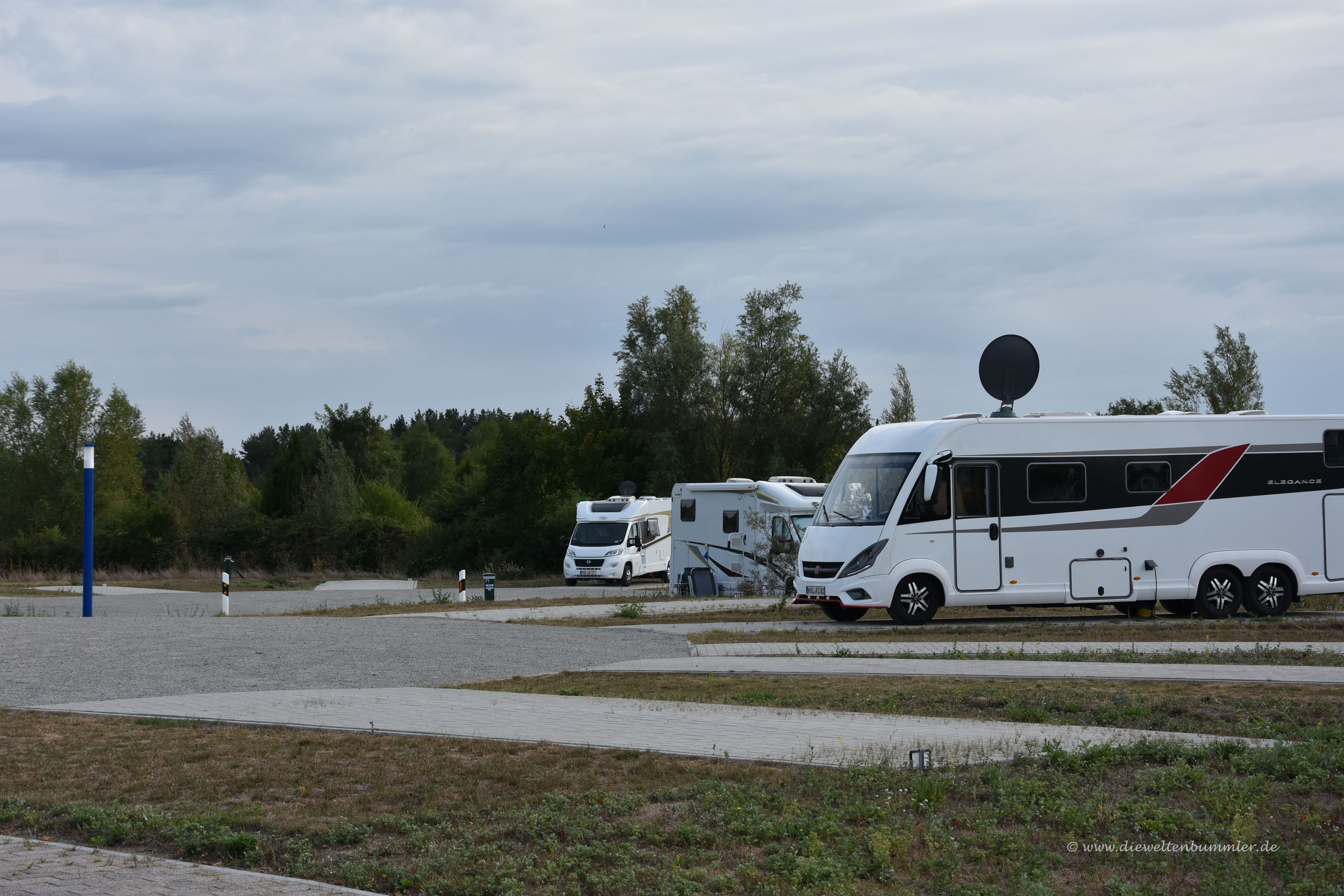 Da der Tag mittlerweile schon etwas fortgeschritten war, überlegten wir, wo wir übernachten könnten und entschieden uns für den noch neuen Wohnmobilstellplatz in Templin. Dort angekommen, waren wir ob der Größe ziemlich überrascht. Das hätten wir hier in eher nicht so dicht besiedelten Uckermark nicht erwartet. Der Stellplatz in Templin gefiel uns gut. Nur die Anmeldeprozedur im benachbarten Therme war mal wieder etwas umständlich. Wir sind grundsätzlich der Ansicht, dass ein Wohnmobilstellplatz unkompliziert sein sollte. Der hier war das in Sachen Anmeldung leider nicht. Aber grundsätzlich ein schöner und ruhiger Stellplatz mit viel Freiraum um das Fahrzeug herum.