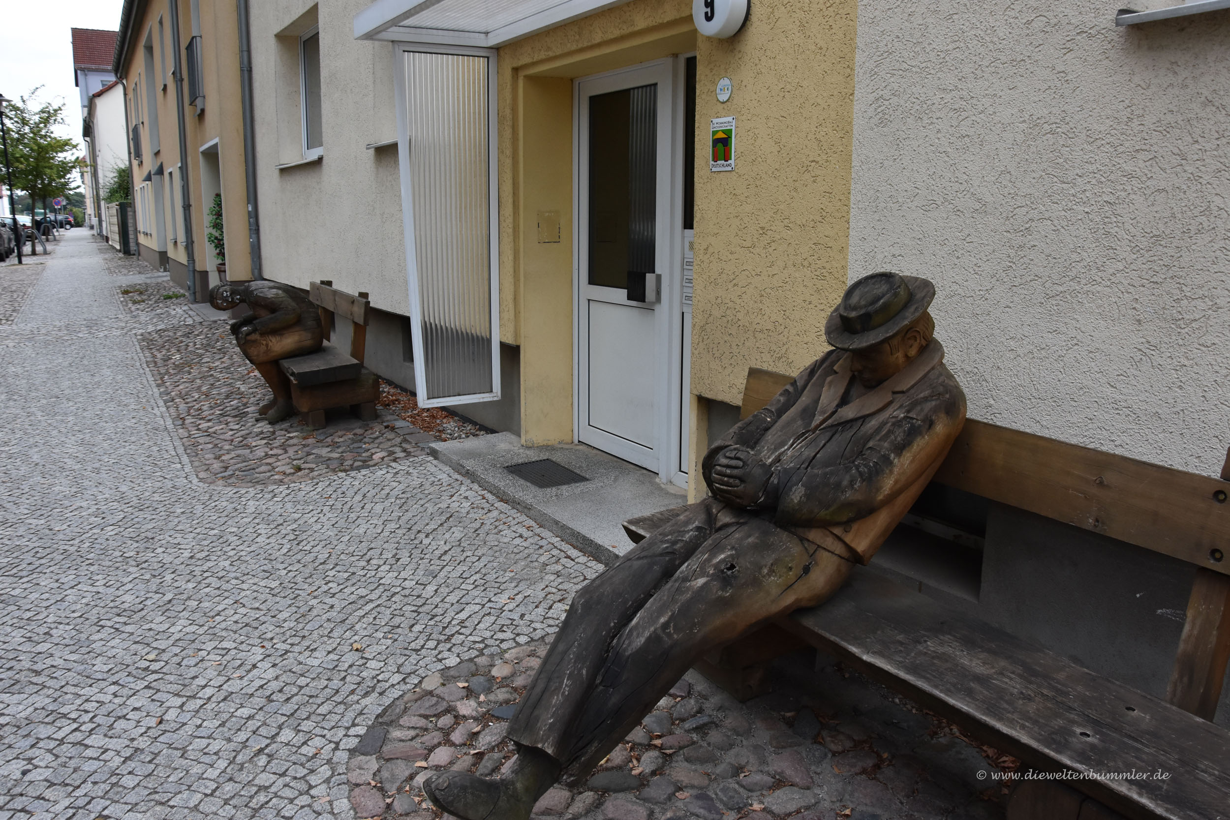 Es gab jetzt nichts, was uns vor lauter Begeisterung umgehauen hat, aber es war auf jeden Fall nett und angenehm. Drollig fanden wir die vielen überdimensionalen Reißzwecken, die als sogenannter Pinnenpfad durch den Ort führten. Wir ahnten sofort, dass der Erfinder der Heftzwecke bzw. Reißzwecke vermutlich hier in Lychen geboren worden sei. Und siehe da, nach wenigen Metern tauchte an einem Haus ein Hinweisschild auf, auf dem zu lesen war, dass ein gewisser Johann Kirsten hier zumindest lebte und die Heftzwecke erfand. Wo er geboren wurde und starb, ist kurioserweise nicht bekannt.