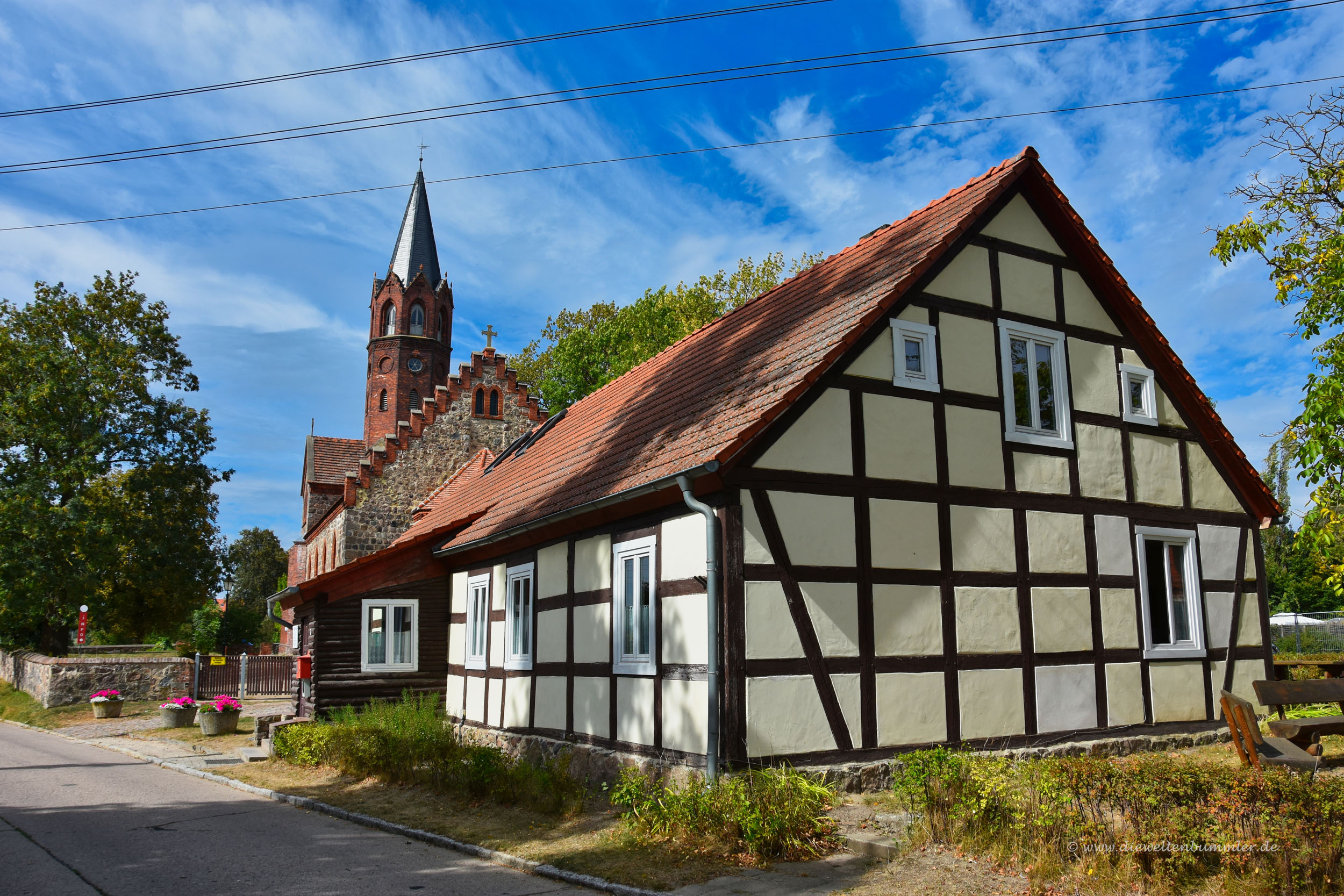 In Angermünde steuerten wir den kleinen Wohnmobilstellplatz an, hatten jedoch nicht die Absicht dort zu übernachten. Vielmehr spazierten wir von der südlichen Stadtmauer einmal quer durch die Altstadt bis zum nördlichen Mündesee. Dort gab es einen Skulpturenpfad, den wir außerdem aufsuchten, bevor wir uns langsam wieder unserem Wohnmobil näherten. Wir warfen auch noch einen Blick in die Kirche von Angermünde und wurden prompt wieder einmal von der deutschen Geschichte eingeholt. Denn ausgerechnet zu diesem Zeitpunkt gab es eine Fotoausstellung über die Gräueltaten im Zweiten Weltkrieg.