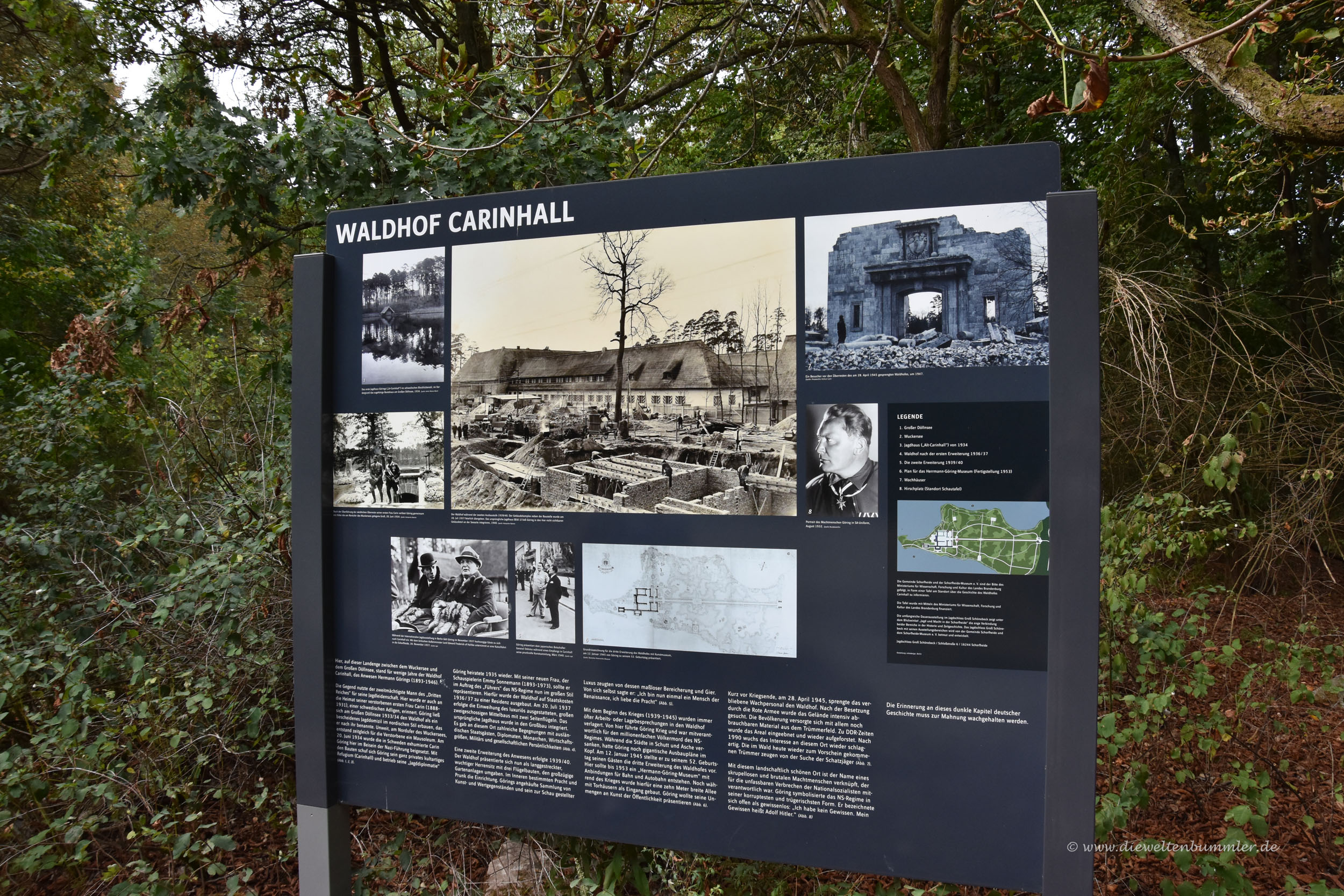 Auf unserer Liste stand nun abermals ein Punkt, der an die dunkle Zeit Deutschlands erinnert. Göring hatte in der Schorfheide, durch die wir gerade fuhren, ein riesiges Anwesen. Wir wussten, dass davon zum Glück nicht mehr viel übrig ist, aber von den Überresten brauchten wir dennoch eine Aufnahme. Ein wenig befremdlich wirkte es schon, dass wir mehrere Gedenkstätten aufsuchten und neben dem Obersalzberg dann auch noch zu Carinhall fuhren. So hieß das Anwesen von Göring, das ziemlich einsam in einem der weiten Wälder lag. Über den kleinen Waldweg erreichten wir den einstigen Platz von Westen aus. Ein bisschen rumpelig war die Fahrt, aber ein Zurück gab es nach einer gewissen Entfernung dann auch nicht mehr – der sogenannte Point of no return.