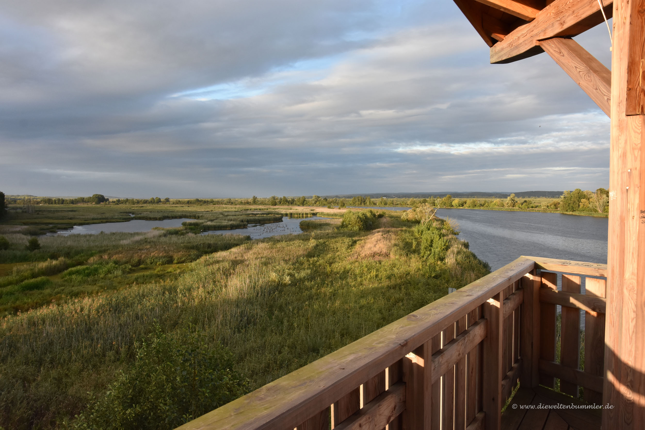 Nachdem wir auf dem Campingplatz eincheckten, was hier noch mit einem Eintrag in ein schweres Buch geschieht – ein Computer war weit und breit nicht zu sehen – gingen wir nochmal zu Fuß los. Wir wollten nochmals ans Ufer bzw. in Richtung Grenzübergang. Dort steht man nämlich mitten im Nationalpark Unteres Odertal, genauer gesagt, auf einem dortigen Aussichtsturm. Und von dort konnte man wieder herrlich zahlreiche Vögel in der Abendstimmung in den Oderauen beobachten. Das war ein schöner Abschluss für einen mal wieder erfolgreichen Reisetag.