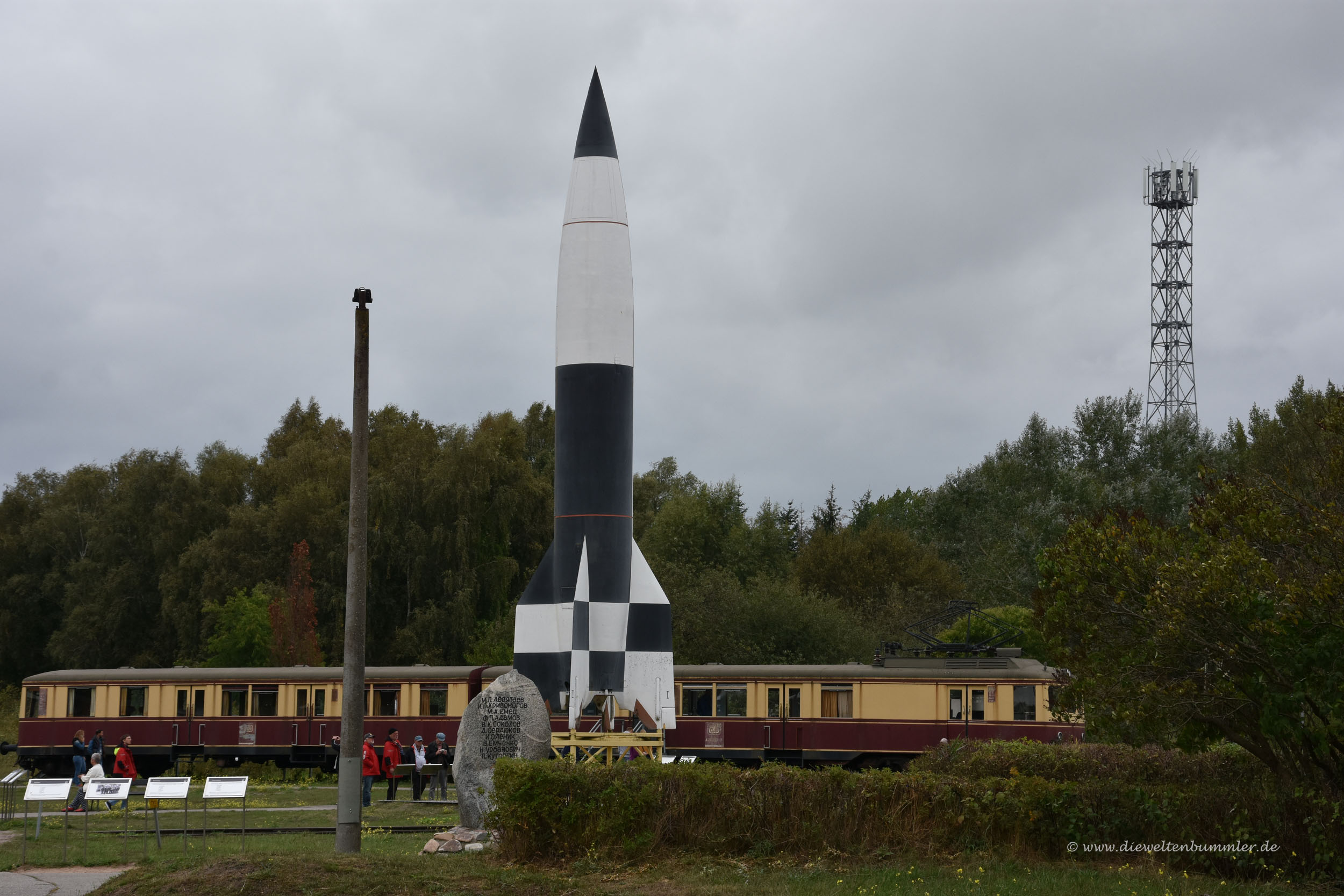 Unpassend fanden wir auch den überdimensionalen Strandkorb, der in der Nähe der V2-Rakete aufgestellt war. Nichts gegen den Strandkorb, der war witzig. Aber er gehörte einfach nicht in das Freigelände einer Raketenversuchsanlage – ein Ort, an dem Waffen entwickelt wurden. Was sollte der Strandkorb wohl vermitteln? Dass man den todbringenden Raketenstarts gemütlich aus dem Strandkorb zuschauen kann?