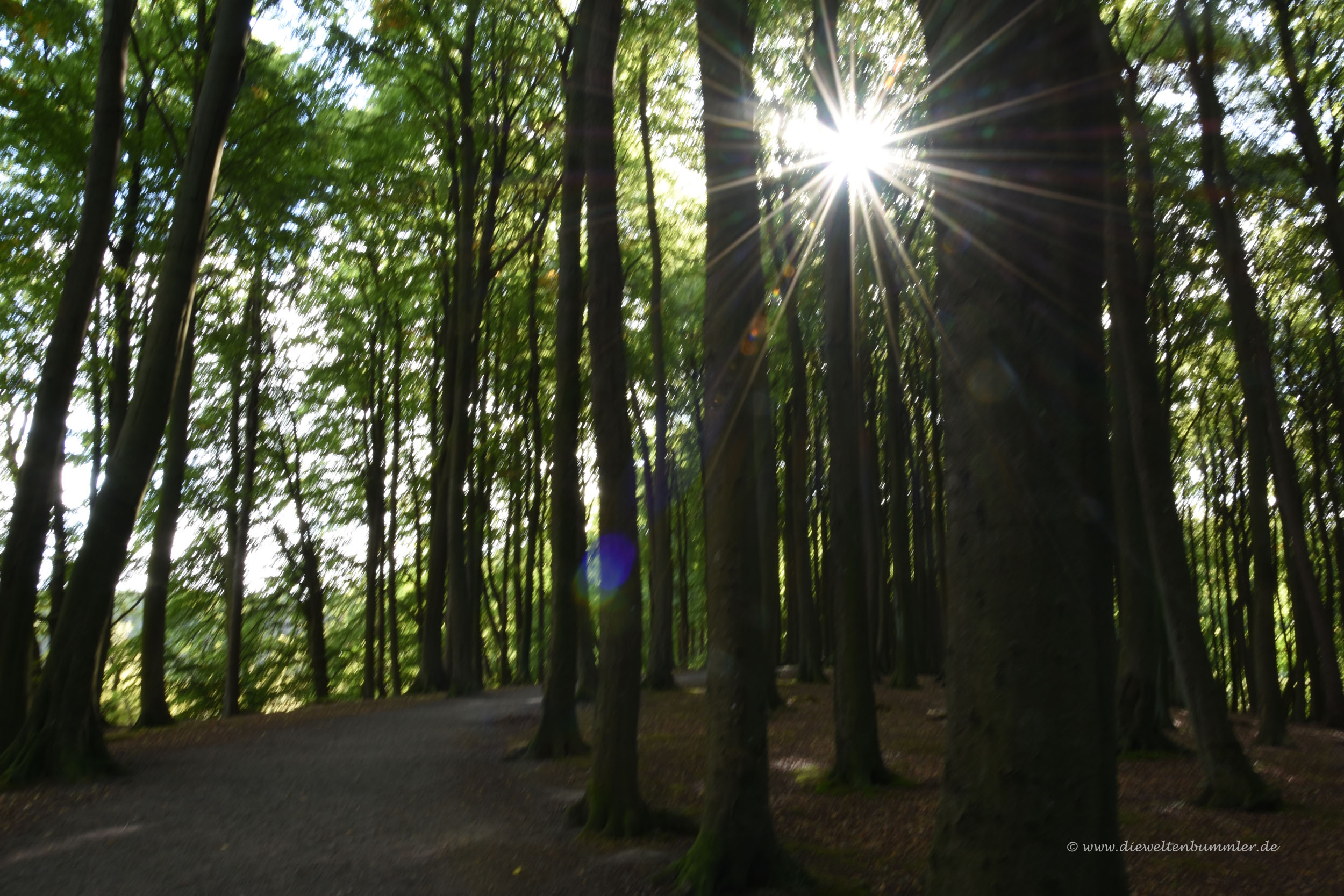 Der Umweg führte uns großräumig über Sagard und über extrem holperige Kopfsteinpflasterstraßen. Am Großparkplatz Hagen hätte man sogar auch übernachten können und es sah sogar ganz passabel aus. Vermutlich wären wir dann sogar noch am Vorabend zum Kreidefelsen gegangen. Aber dann hätten wir eben nicht so ein schönes Wetter gehabt. So konnte die Sonne nun am frühen Morgen die Felsküste viel besser beleuchten. Und früh am Morgen war es zum Glück immer noch. Trotz des Umwegs und der Fahrerei waren wir so früh am Ausgangspunkt, dass wir den Wanderweg durch den Wald fast alleine bewältigen.