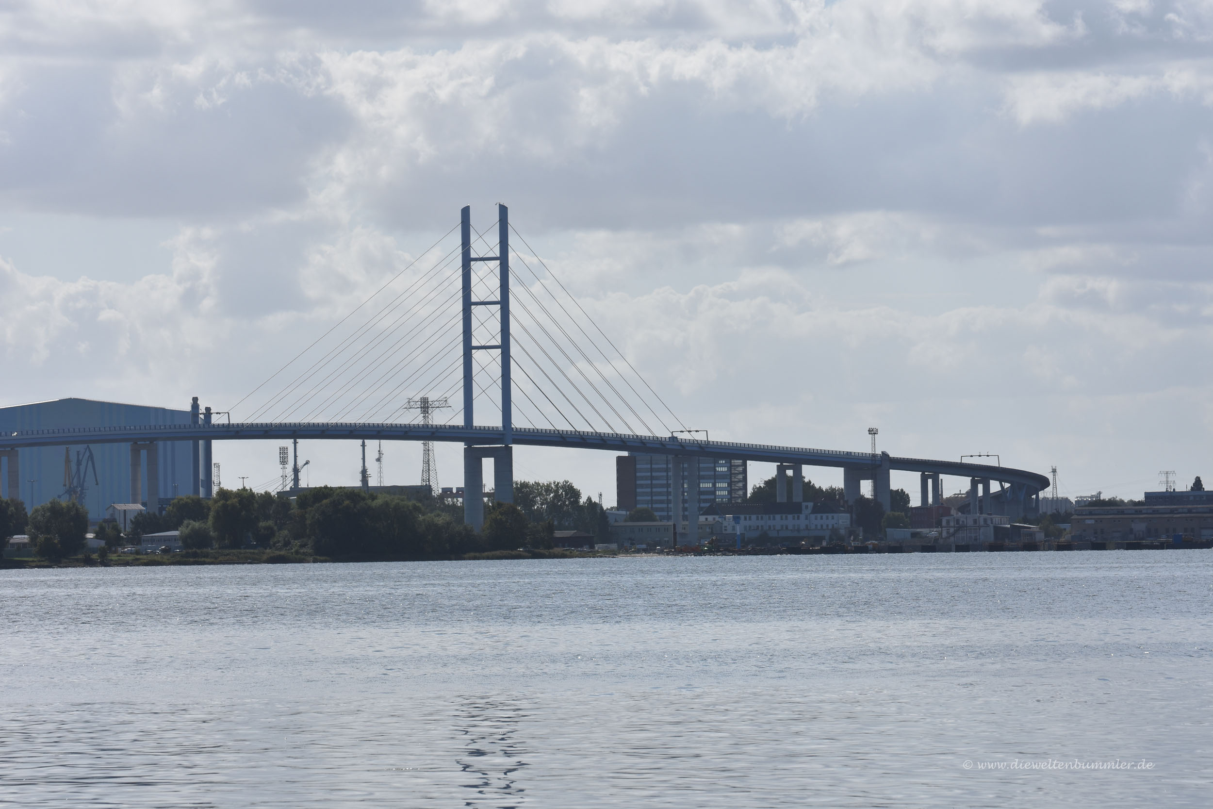 So fuhren wir weiter nach Stralsund, wo es gleich drei Wohnmobilstellplätze gibt. Der erste, noch etwas außerhalb, war proppevoll, so dass wir zur Rügenbrücke fuhren. Dort befinden sich in unmittelbarer Nähe zu einer Tankstelle und zur Brücke die beiden anderen. Doch diese sagten uns rein optisch überhaupt nicht zu und schienen uns in der Nacht auch ein wenig voll zu sein. Ja, wir waren mittlerweile anspruchsvoll geworden. Vor allen Dingen die Ruhe in der Nacht war uns nach anstrengenden Tagen extrem wichtig. Also machten wir das, was wir am heutigen Tag noch gar nicht vorgehabt hatten: Wir fuhren rüber nach Rügen. Das war nicht geplant, aber egal.