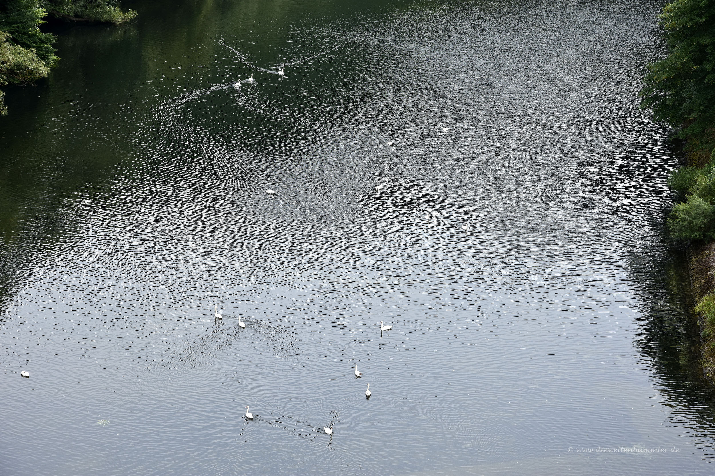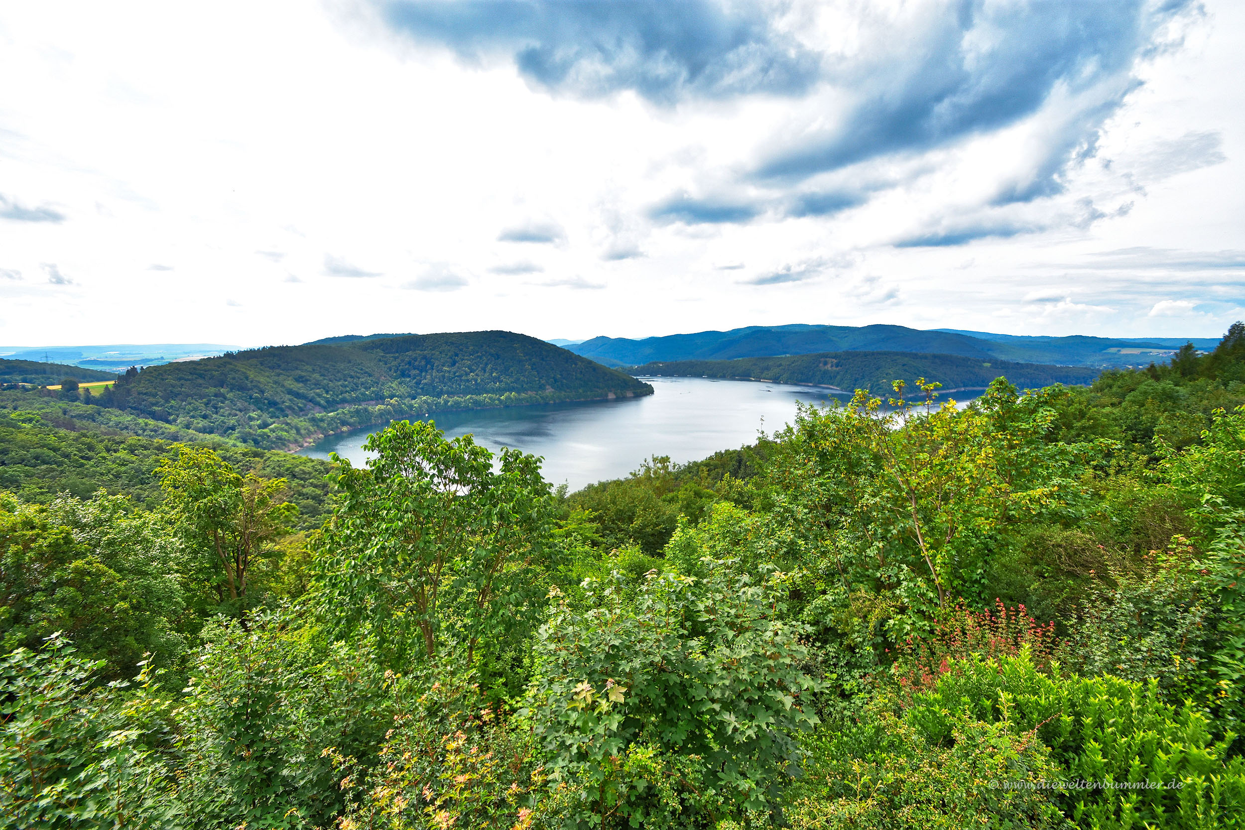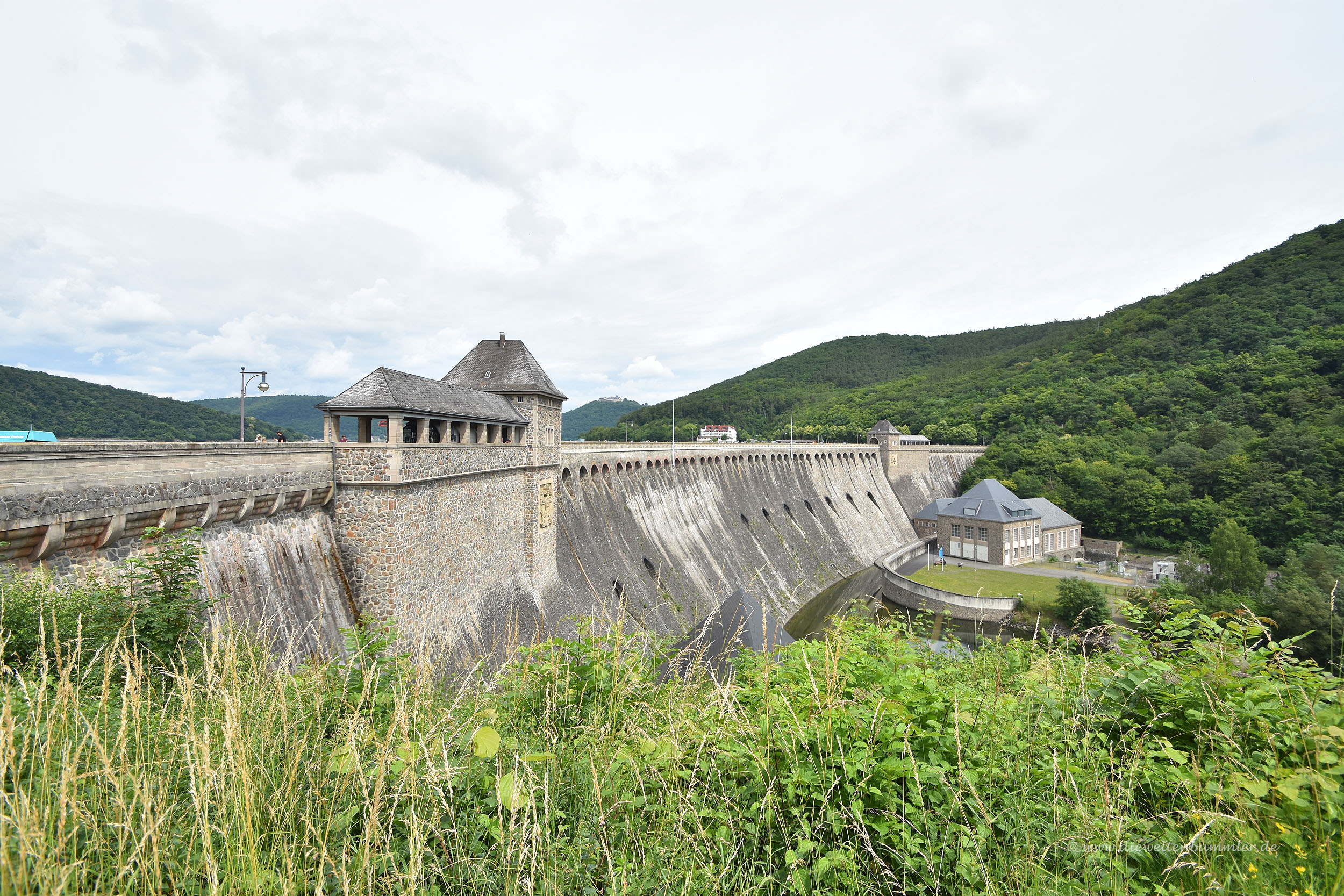 Ein paar schöne Aufnahmen brauchten wir von dort oben mit Blick auf den Edersee. Grundsätzlich war das kein großes Problem, nur die Lichtverhältnisse waren wegen dunkler Wolken ein wenig bescheiden. Später fuhren wir hinab zur Staumauer und lösten auf dem Parkstreifen ein Ticket.