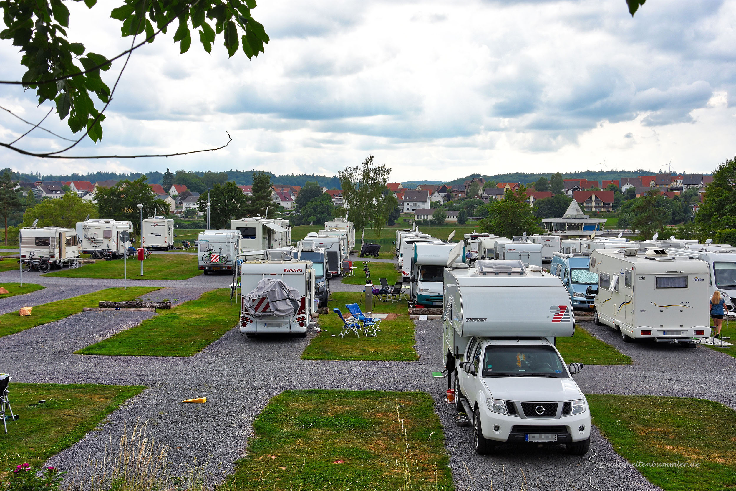 Nach den Einkäufen in Schwalmstadt ging es dann auch gleich zum Wohnmobilstellplatz in Neukirchen. Von diesem hatten wir schon einiges gehört und waren daher sehr überrascht, dass der Platz an einem Samstagabend im Juni kaum ausgelastet war. Es standen dort gerade einmal 20 Reisemobile. Dabei hat es Platz für rund 80 Fahrzeuge. Das wunderte uns dann doch ein wenig.