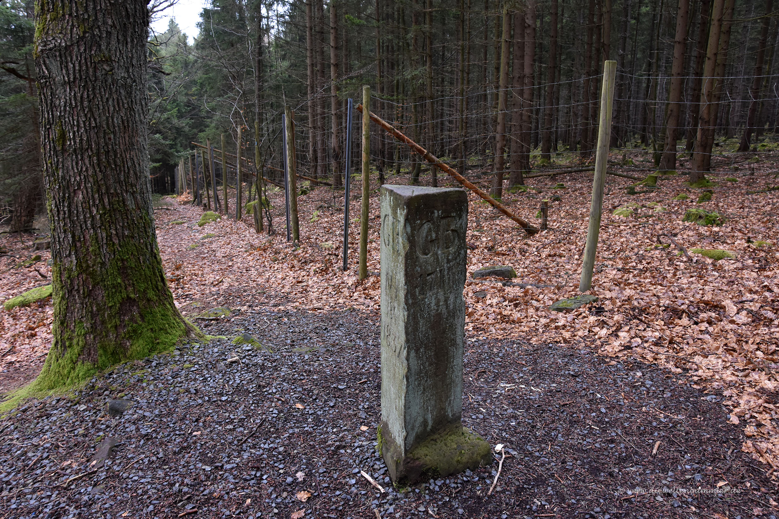 Danach stand dann besagtes Dreiländereck auf dem Programm. Der Fußweg in den Wald war noch völlig okay. Doch genau als wir das Dreiländereck besuchten, fing es plötzlich stark an zu regnen. War ein wenig unangenehm. Aber im Wohnmobil konnten wir dann während der weiteren Fahrt die Heizung aufdrehen und uns ein wenig trocknen.