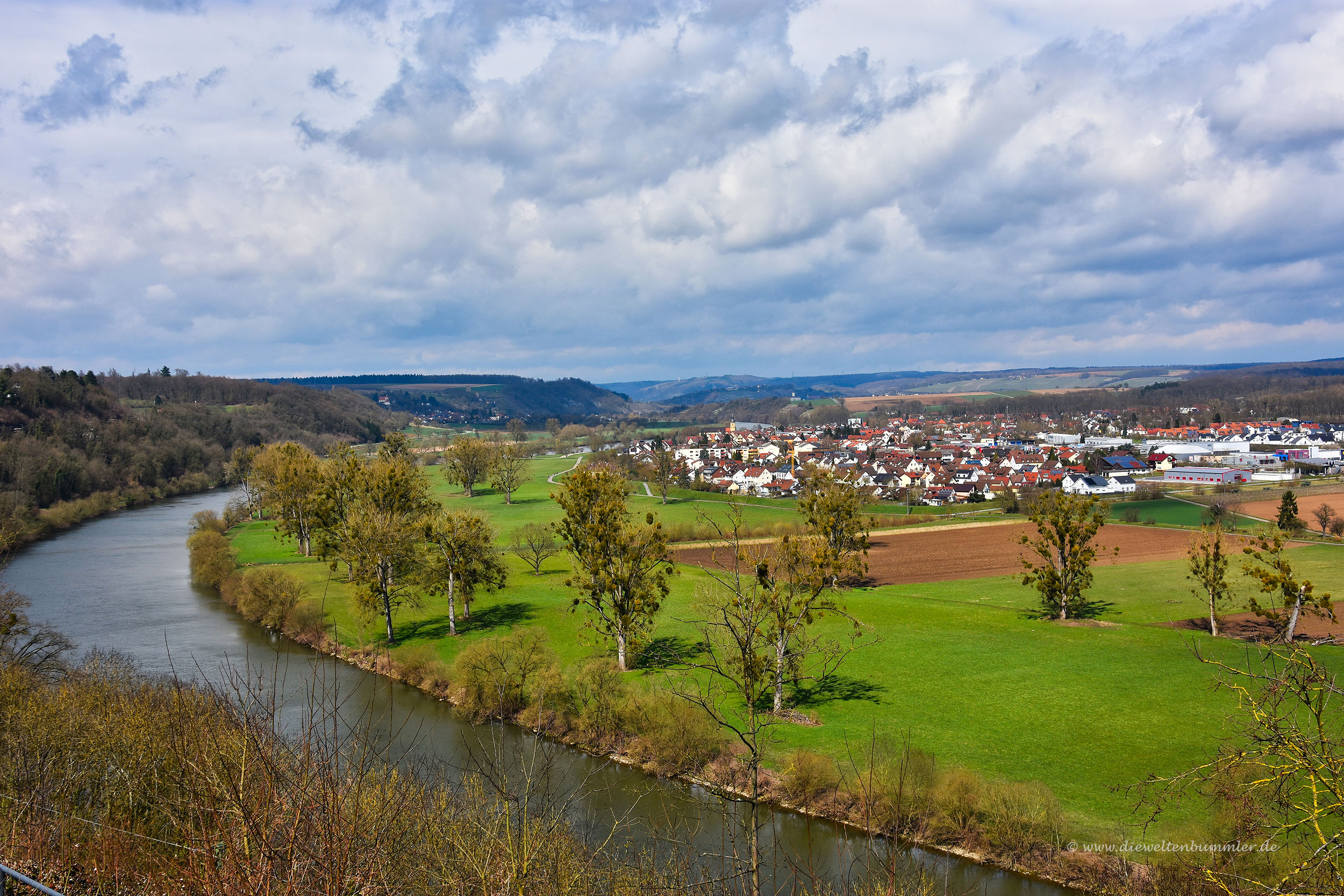 Ganz in der Nähe existiert außerdem noch ein schöner Aussichtspunkt, von dem aus man wunderbar auf das Tal des Neckars und auf die gegenüberliegende Ortschaft Guttenbach blicken kann. Mittlerweile war es schon spät geworden und wir beabsichtigten, in Hirschhorn, den Stellplatz aufzusuchen. Also folgten wir weiterhin dem Neckar. Doch auf dem Weg in den Ort sahen wir ein Schild mit dem Hinweis, dass Amorbach nur 35 Kilometer entfernt sei.