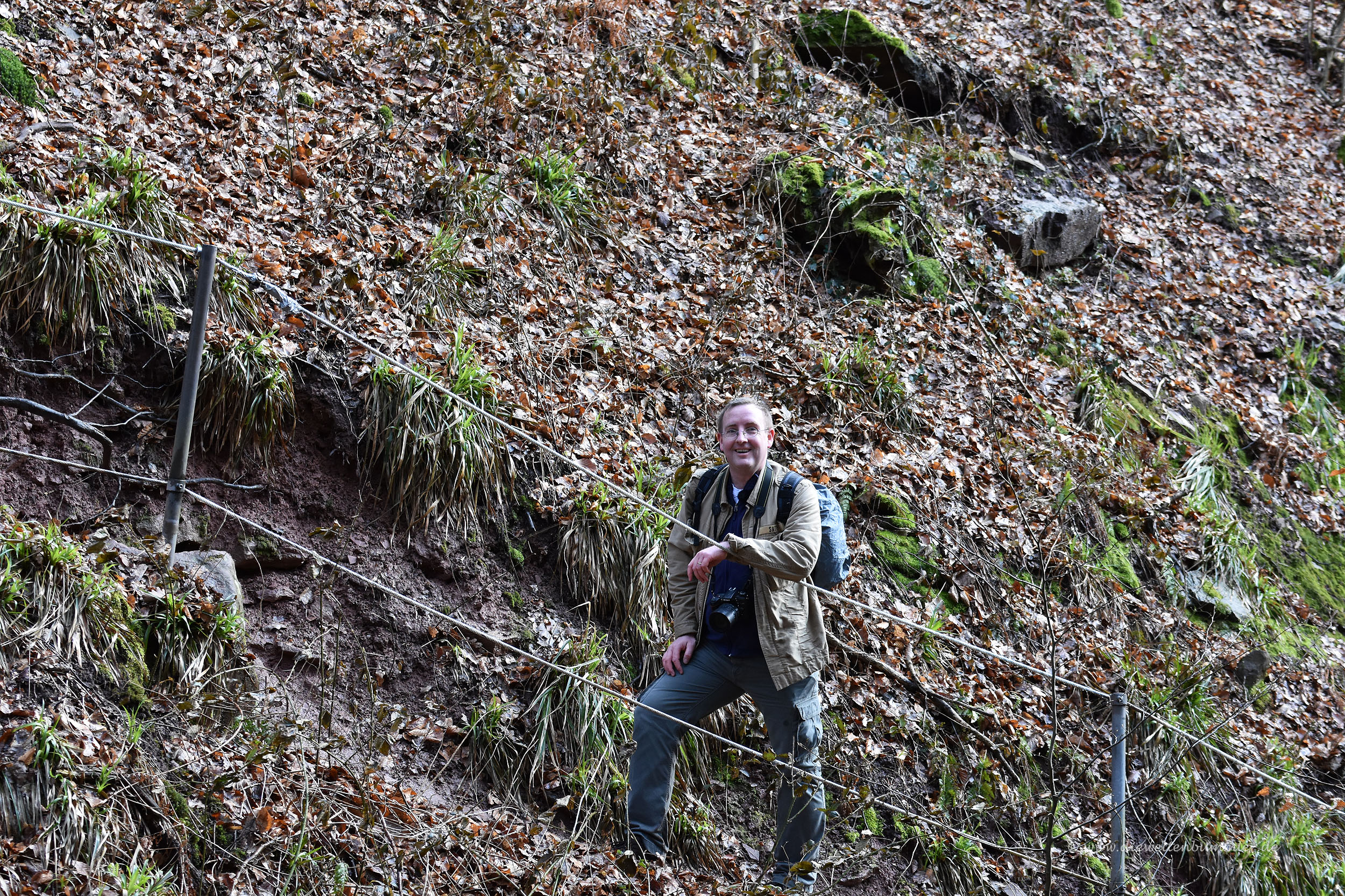 Als wir in Mosbach wieder ins Auto einstiegen, fing es abermals stark an zu regnen. Doch tatsächlich war es so, dass genau beim Einparken am nächsten Zielort der Regen aufhörte und der Himmel sogar wieder aufklarte. Anstrengend wurde es durch den vorherigen Regen dennoch. Denn wir waren mittlerweile an der Margaretenschlucht angekommen.