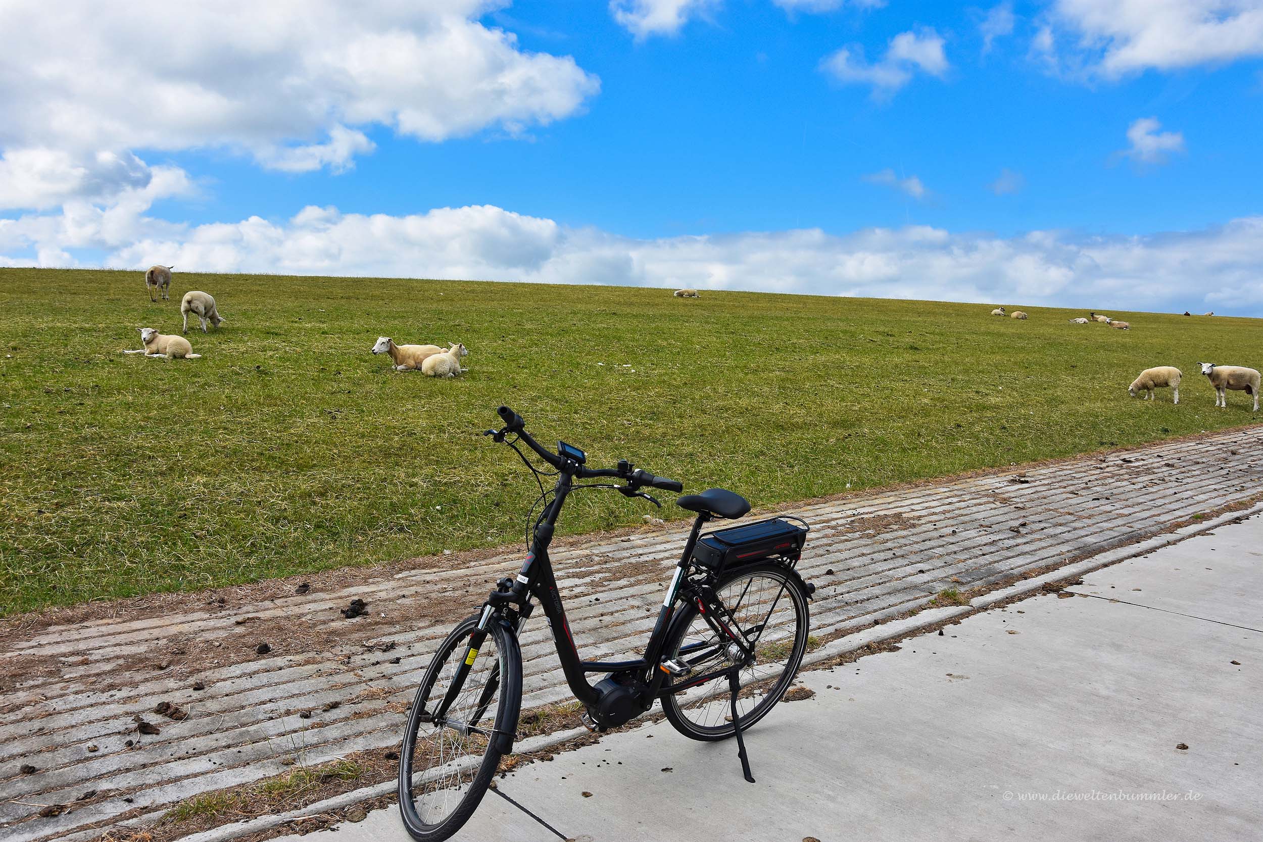 Für den Samstag haben wir uns dann extra etwas ausgewählt, was wir noch nie taten. Anstatt nämlich einen längeren Spaziergang zu unternehmen, beschlossen wir, uns E-Bikes auszuleihen. Wir sind noch nie mit einem E-Bike gefahren und wir wollten einfach mal wissen, wie das ist. Außerdem sind wir noch nie am Deich in östliche Richtung gegangen. Wir kennen den Deich in westliche Richtung sehr gut und gingen die neun Kilometer lange Strecke zwischen Harlesiel und Neuharlingersiel schon des Öfteren.