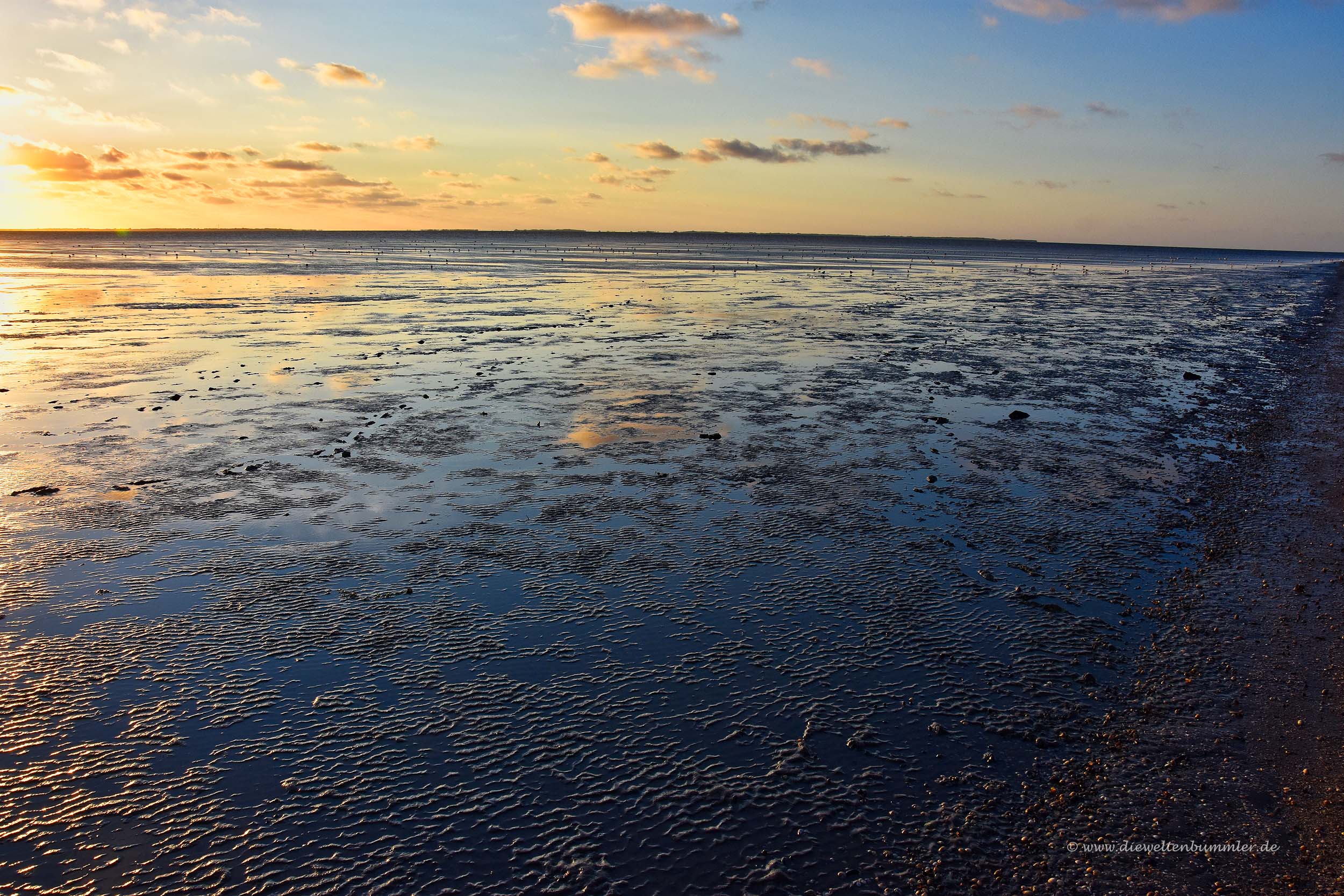 Da das Wasser sich langsam entfernte, wagten wir auch noch ein paar Schritte in das Wattenmeer hinein, doch weit kam man an dem Abend nicht mehr.
