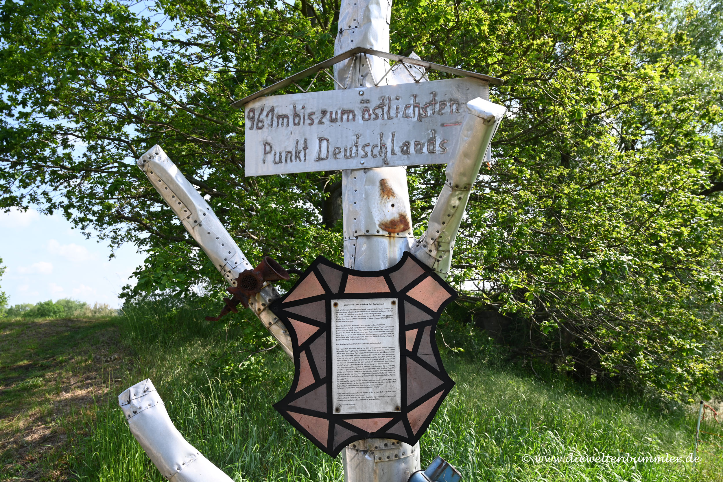 Am nächsten Morgen steuerte ich mein Wohnmobil zum östlichsten Punkt Deutschlands. Auch diesen Ort wollte ich schon länger mal besuchen. Heute bekam ich endlich die Gelegenheit. Den Wagen parkte ich in einer kleinen Ortschaft namens Zentendorf, von wo aus ich den Rest zu Fuß durch die Felder an der Neiße zurücklegte.
