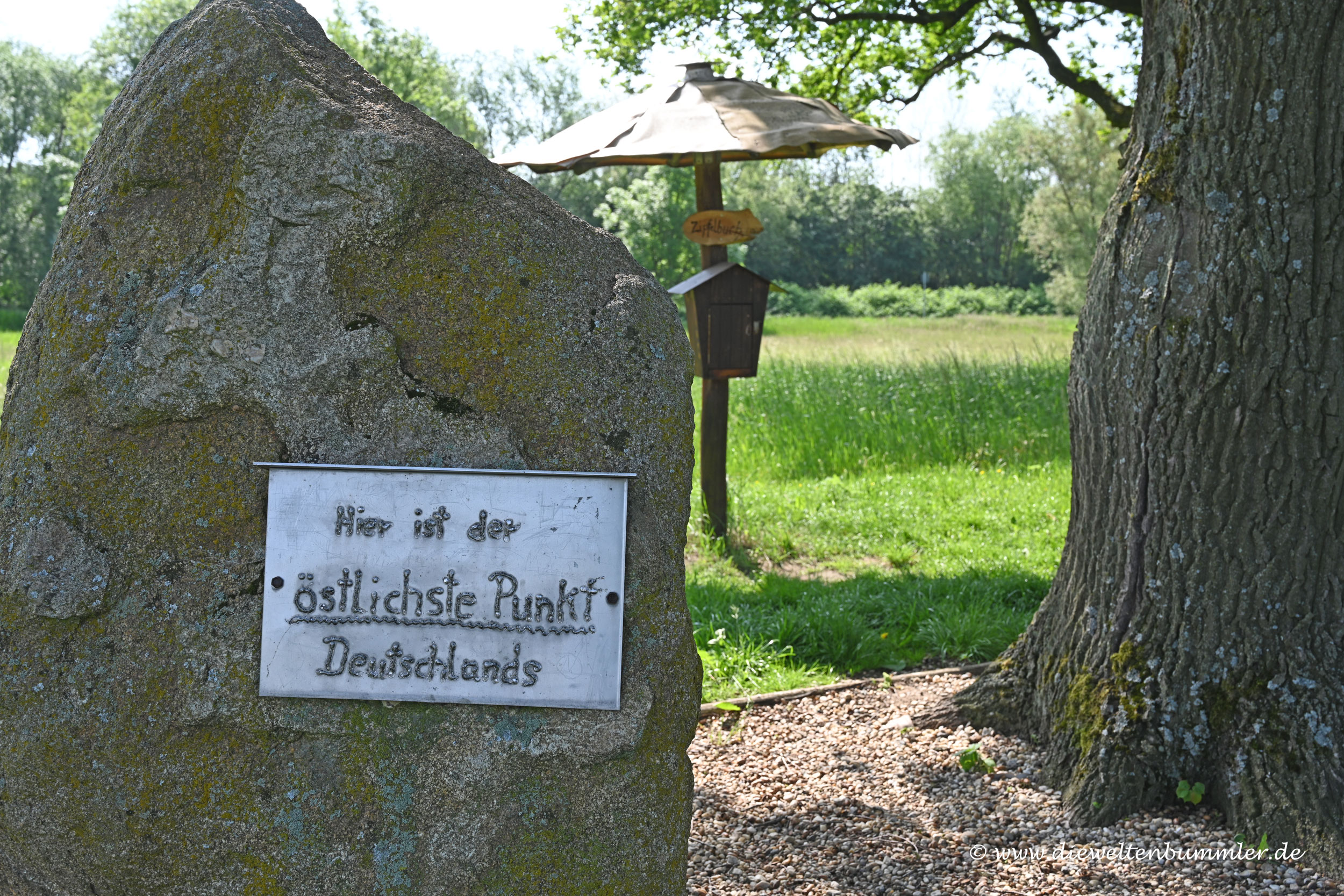 Ich trug mich noch in das dort ausliegende Zipfelbuch ein, so wie ich es immer mache und war dann auch schon wieder verschwunden. Neben dem Zipfelbuch lag ein Zeitungsausschnitt, dass genau an diesem Ort schon mehrfach Vandalismus betrieben wurde. Sehr schade. Der östlichste Punkt Deutschlands liegt so schön ruhig und idyllisch, dennoch gibt es Idioten, die keinen Respekt haben.