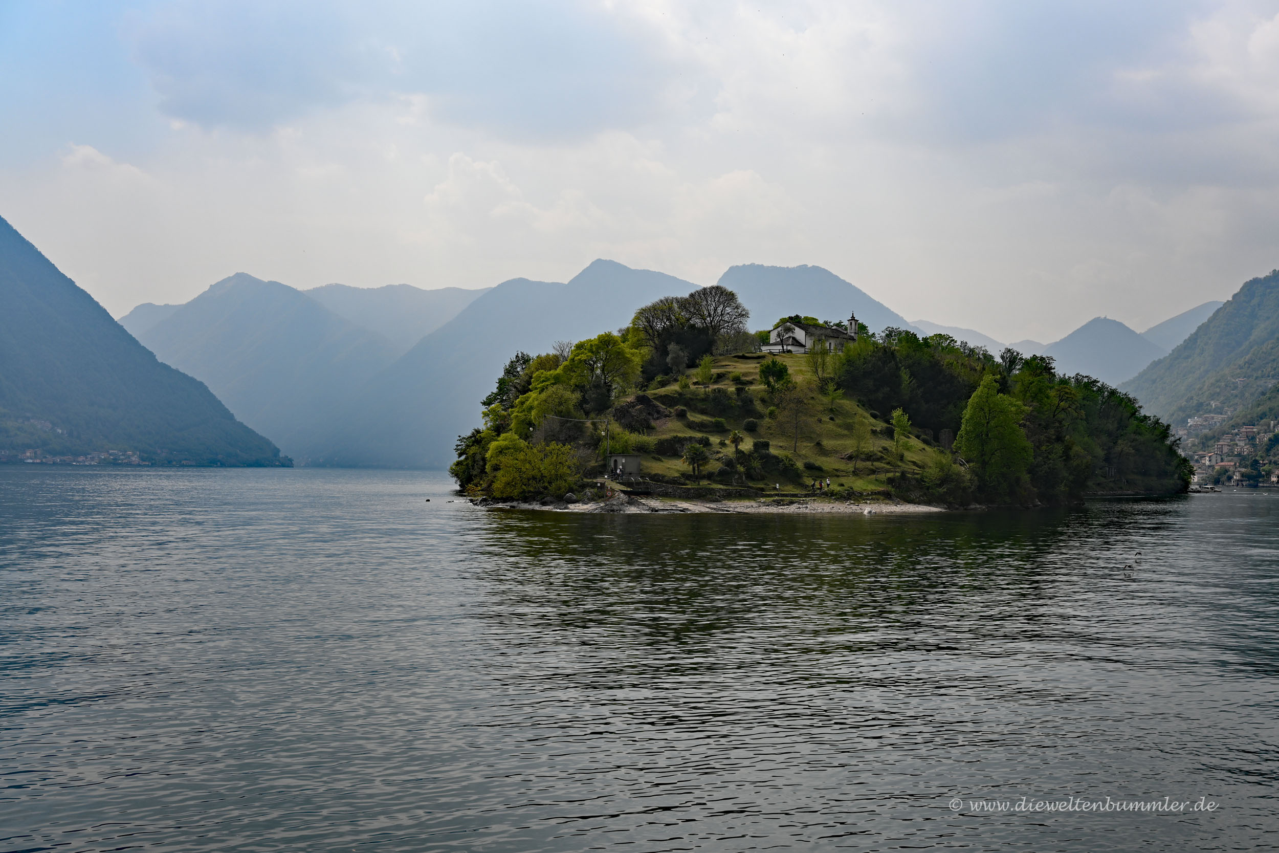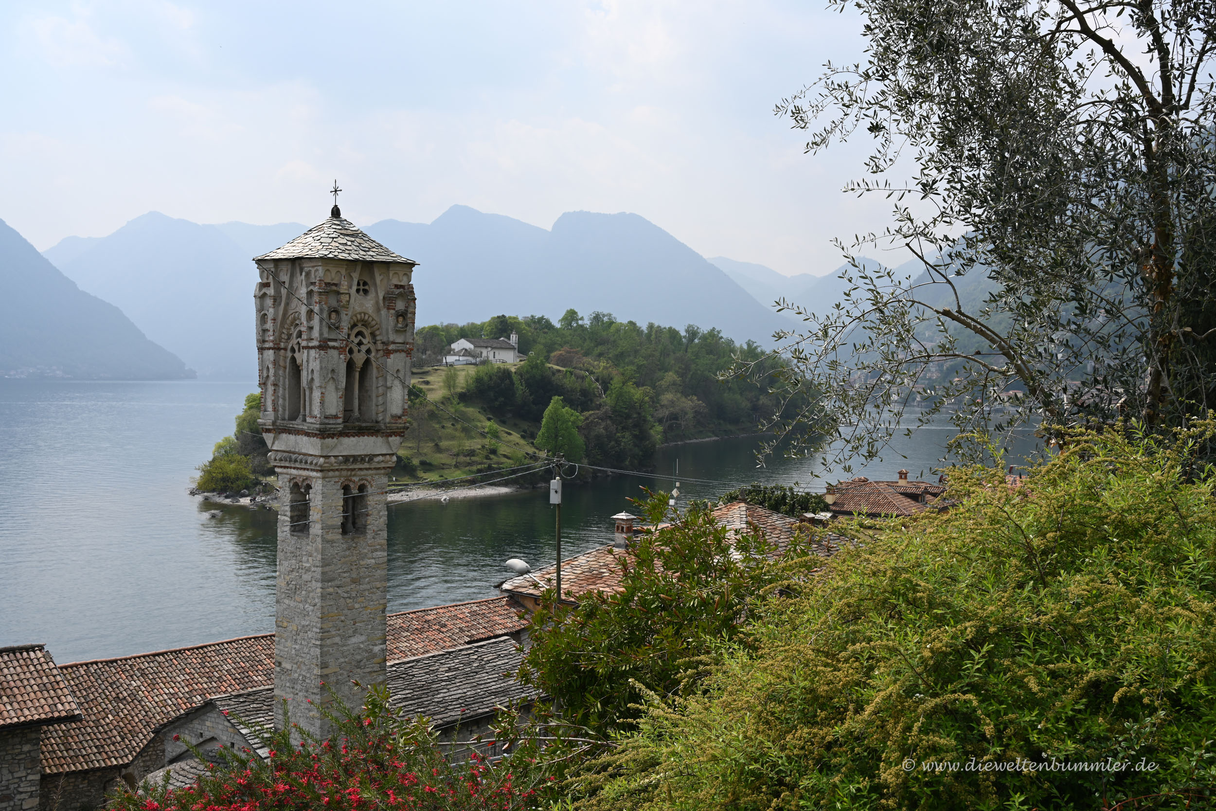 Doch ich wollte mir gerne die kleine Insel Comacina (Isola Comacina) anschauen. Sie ist die einzige Insel im Comer See, wird ständig von Prominenten besucht und ist selbst vom nahe gelegenen Ufer schön anzuschauen, besonders mit dem Türmchen, dass sich am Ufer des Festlands im Vordergrund erhebt.