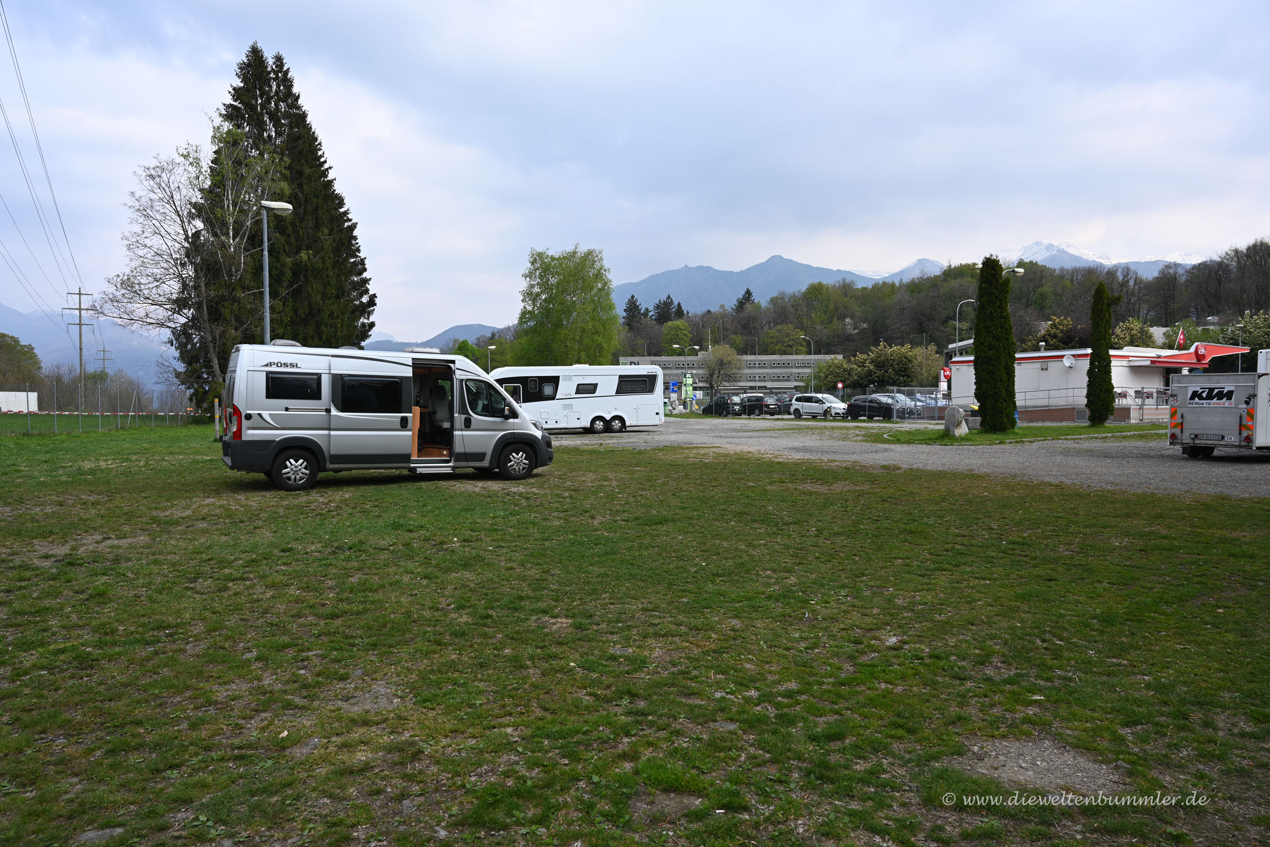 Die Nacht auf dem Stellplatz zwischen Bellinzona und Rivera war außerordentlich ruhig. Ich war froh, so spät am Abend noch einen Platz zu bekommen. Aber selbst nach mir kamen noch einige Wohnmobile an. Der Platz war groß genug, allerdings auch nur ein Stellplatz für eine Zwischenübernachtung. Für Urlaub und Erholung dient er nicht.
