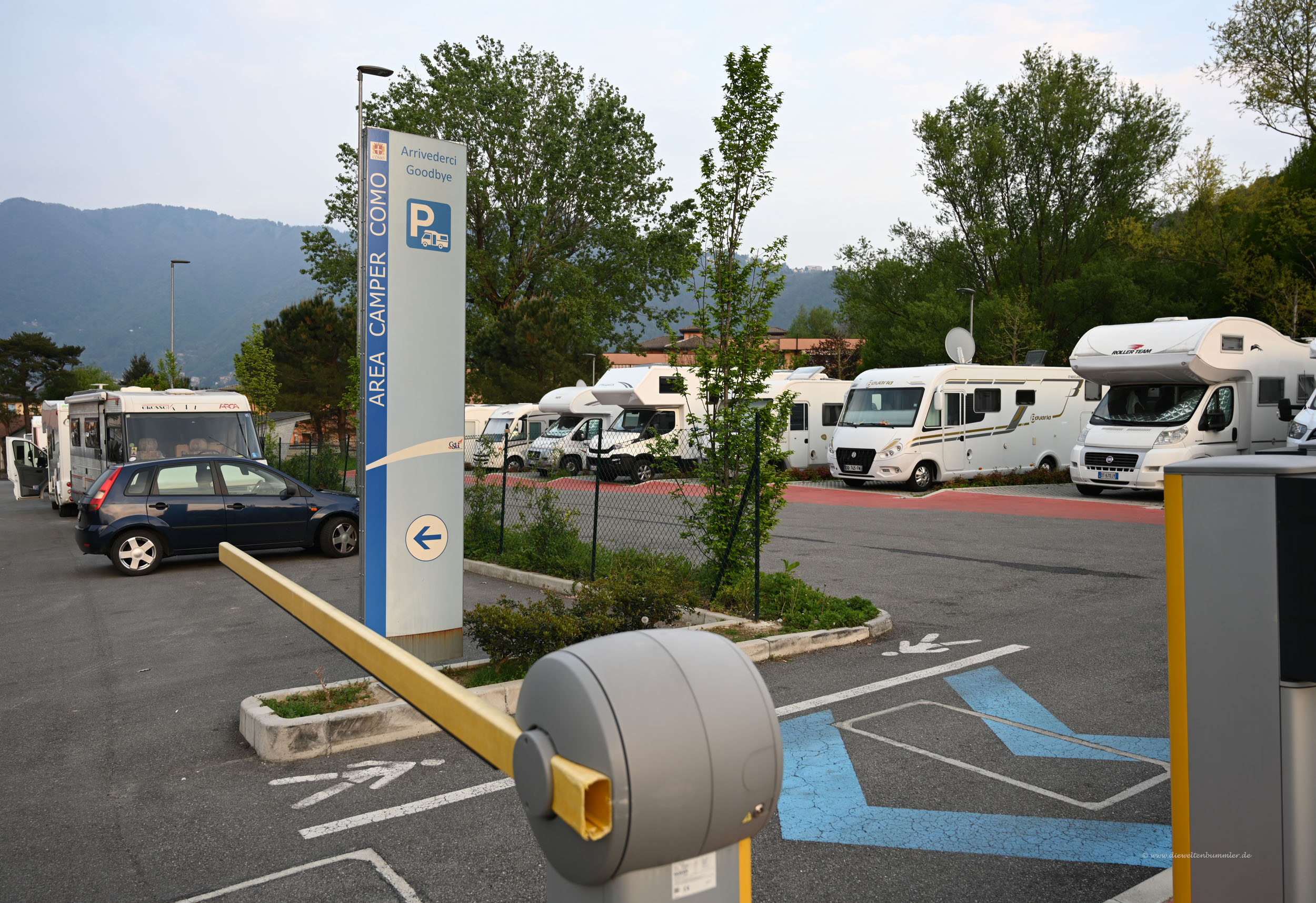 Nach ausgiebiger Besichtigung steuerte ich mein Wohnmobil wieder nach Süden und fuhr zurück nach Cernobbio. Ich wusste von einem dortigen Wohnmobilstellplatz, der mir generell zusagte und auf dem ich gerne unterkommen würde. Allerdings hatte ich kaum Hoffnung, dass es einen freien Platz geben würde. Doch die Sorge war unberechtigt. Es war offensichtlich noch früh genug und ich bekam den vorletzten Platz in der hintersten Ecke. Sehr angenehm.