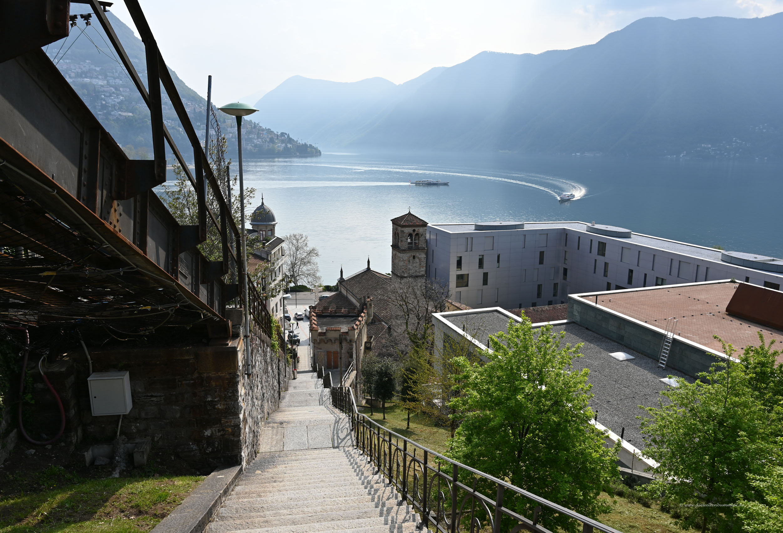 Gleich am nächsten Morgen fuhr ich noch ein Stück weiter südlich, blieb aber noch in der Schweiz. Lugano war mein erstes Besichtigungsziel, denn die Stadt liegt eingepfercht zwischen den Grenzen zu Oberitalien und auch in der italienischsprachigen Schweiz. Man kann sehr schnell vergessen, dass man noch in der Schweiz ist, wenn man sich in Lugano aufhält. Das Wohnmobil stellte ich auf dem dortigen Wohnmobilstellplatz ab und machte mich zu Fuß auf zu einer kleinen Stadtbesichtigung.