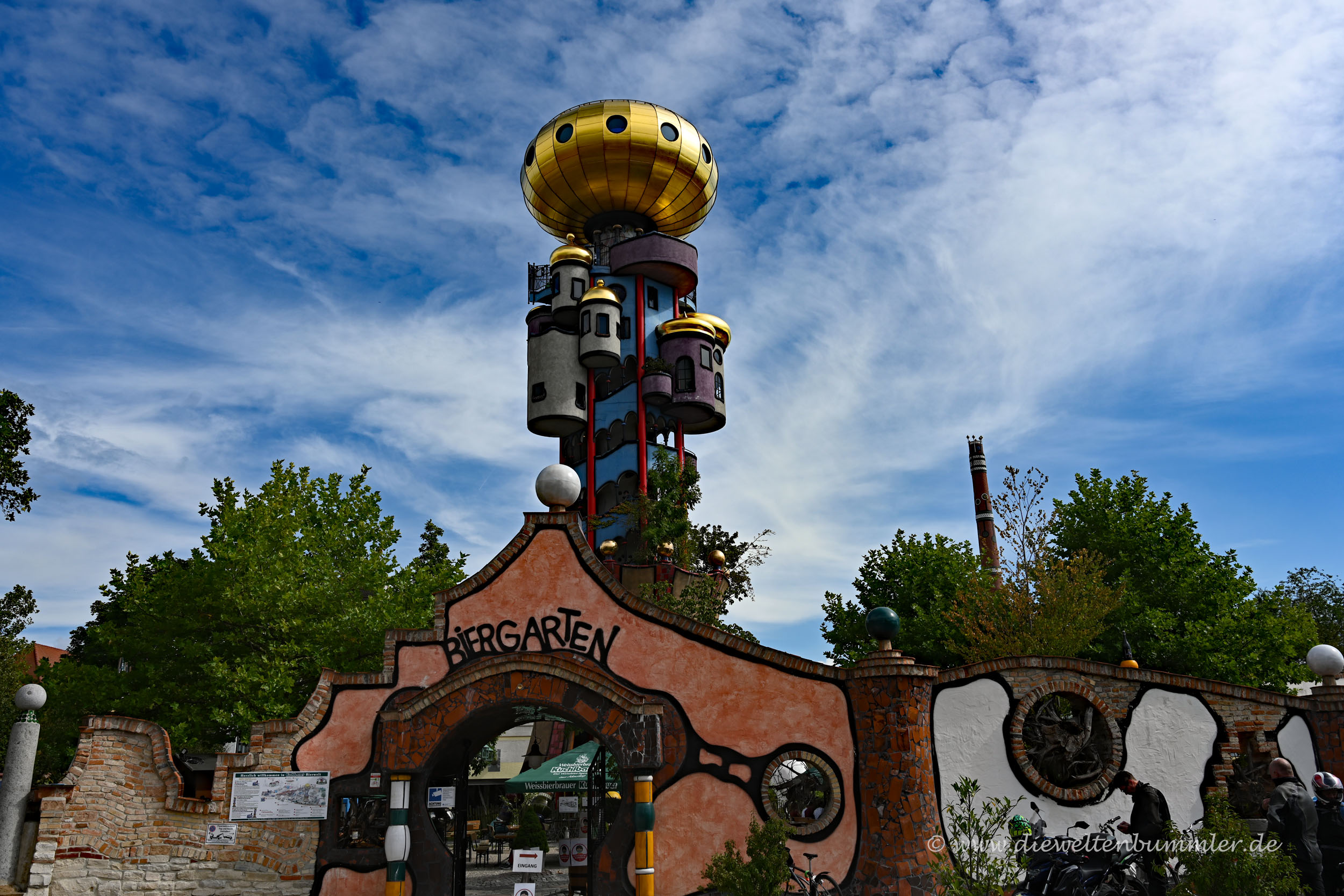 Auf dem Weg dorthin kamen wir zum Glück problemlos an München vorbei und lasen wir auf einem braunen touristischen Hinweisschild an der Autobahn etwas vom Hundertwasserturm in Abensberg. Kannten wir noch nicht und Gebäude von Friedensreich Hundertwasser sind immer wieder etwas fürs Auge. Also beschlossen wir spontan einen Zwischenstopp, der sich allemal lohnte.