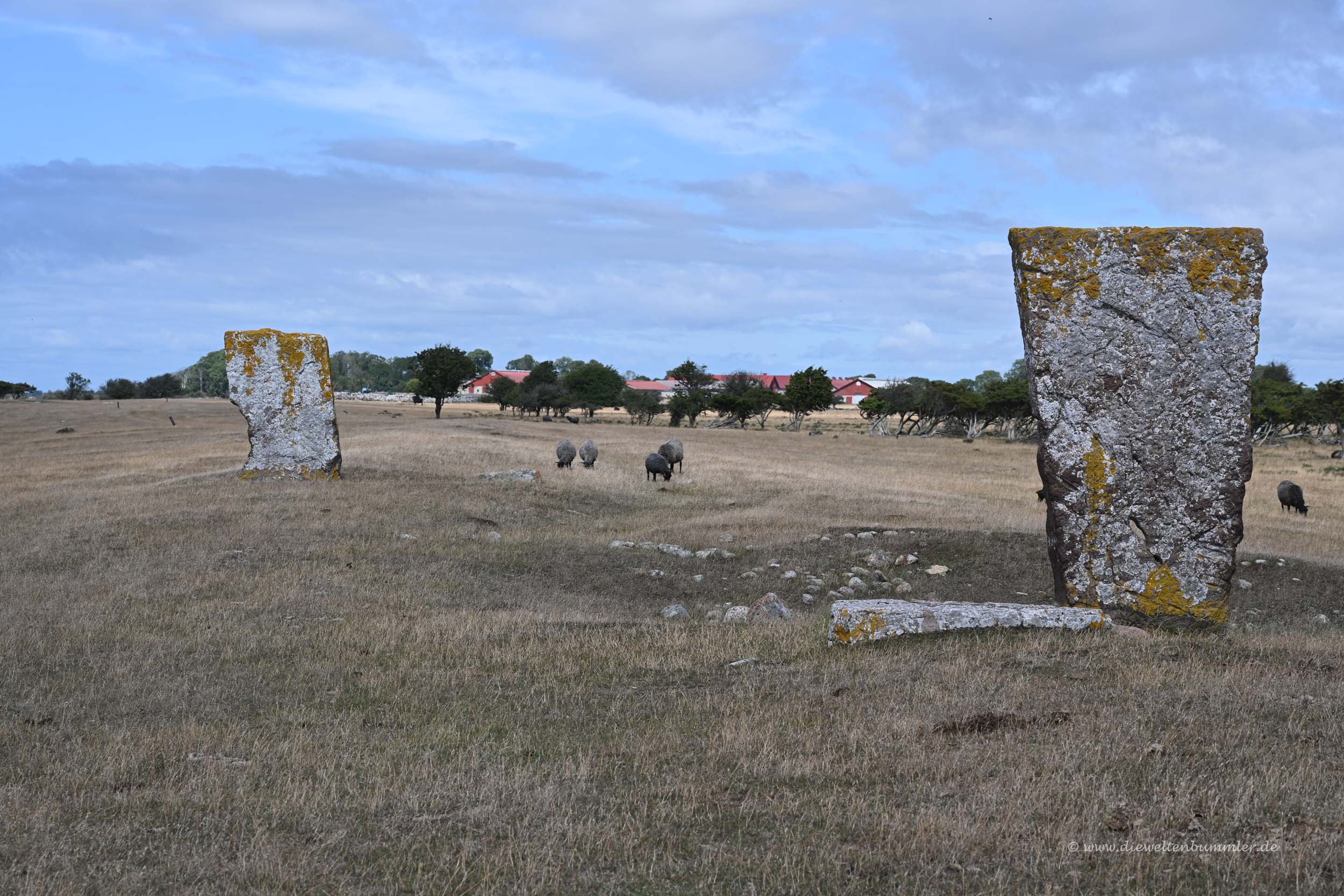 Das tat so richtig gut, da wir ahnten, dass es bis zur nächsten Skandinavientour unsere letzte Nacht in Schweden sein dürfte. Wir wanderten bis zum Löderups Naturreservat in die eine Richtung, wurden dort von einer Welle überrascht, so dass unsere Schuhe plätschnass waren und wanderten mit eben diesen nassen Schuhen in die andere Richtung über den Kiesstrand bis zur berühmten Steinsetzung Ales Stenar.