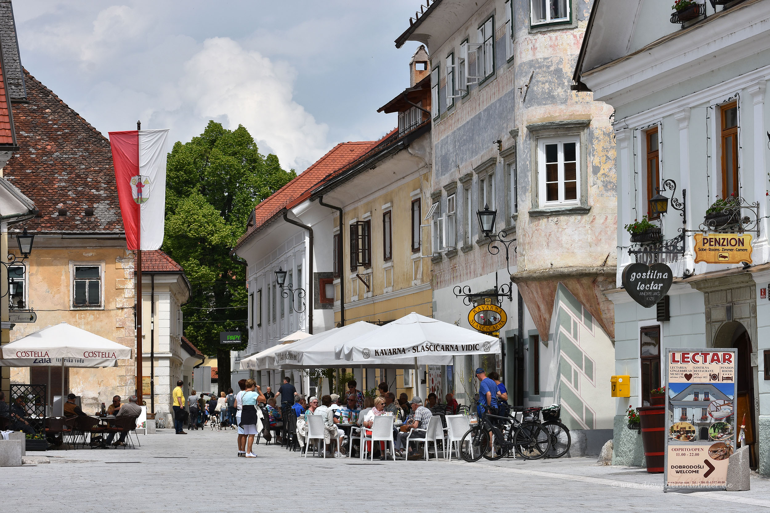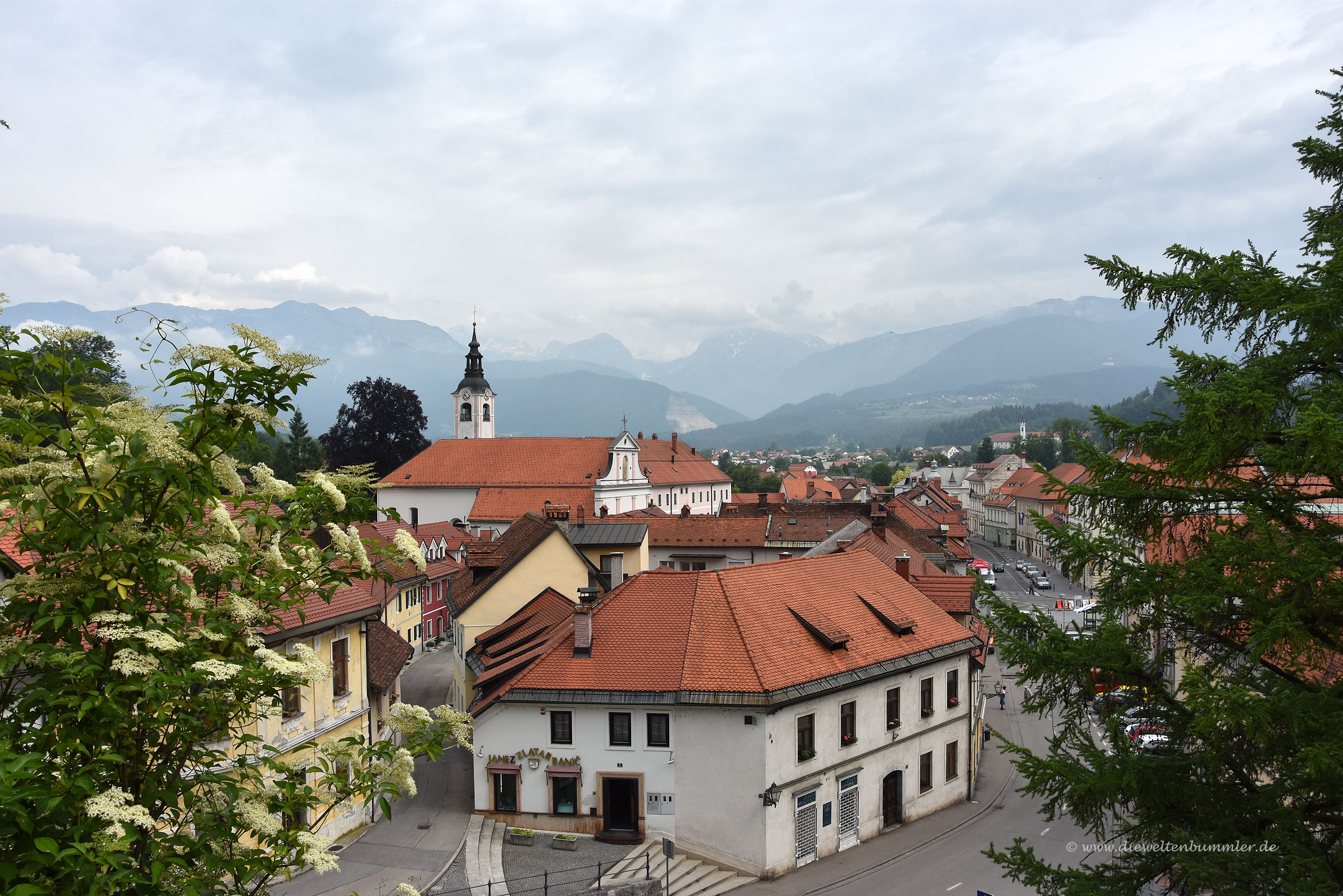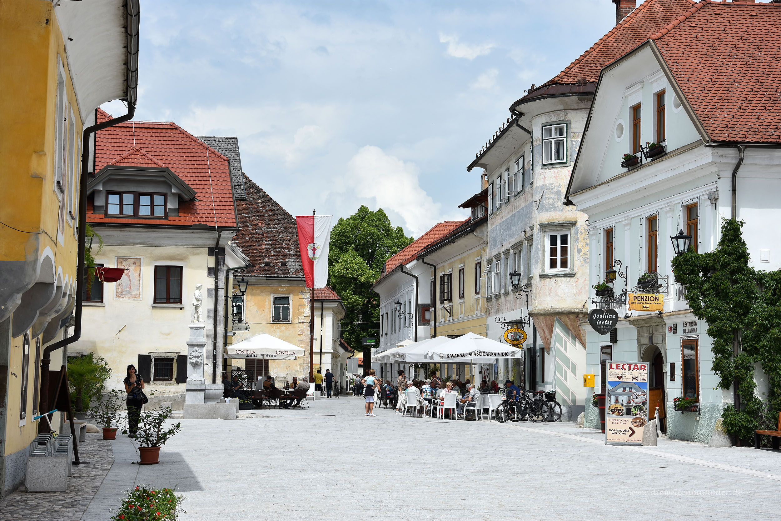 Weiter ging es dann wieder in Richtung Osten, wo wir als Nächstes Kranj besichtigen. Dort gab es einen einfachen Übernachtungsplatz. Auf einem Schotterparkplatz darf man dort für 8 Euro mit dem Wohnmobil eine Nacht stehen. Dummerweise brauchten wir aber jetzt keinen Platz zum Übernachten. Es war ja noch früh und wir wollten weiter. Wie sich nach der Besichtigung der Altstadt herausstellte, muss man die 8 Euro als Tagesticket immer zahlen. Ob man nun eine, fünf oder 24 Stunden bleibt. Na gut, da kann man nichts machen. Eine andere Wahl hätten wir ohnehin nicht gehabt. Die günstigeren Parkplätze entlang der Straßen waren komplett belegt. Die Stadt hat uns nun nicht so umgehauen, aber es war nett.