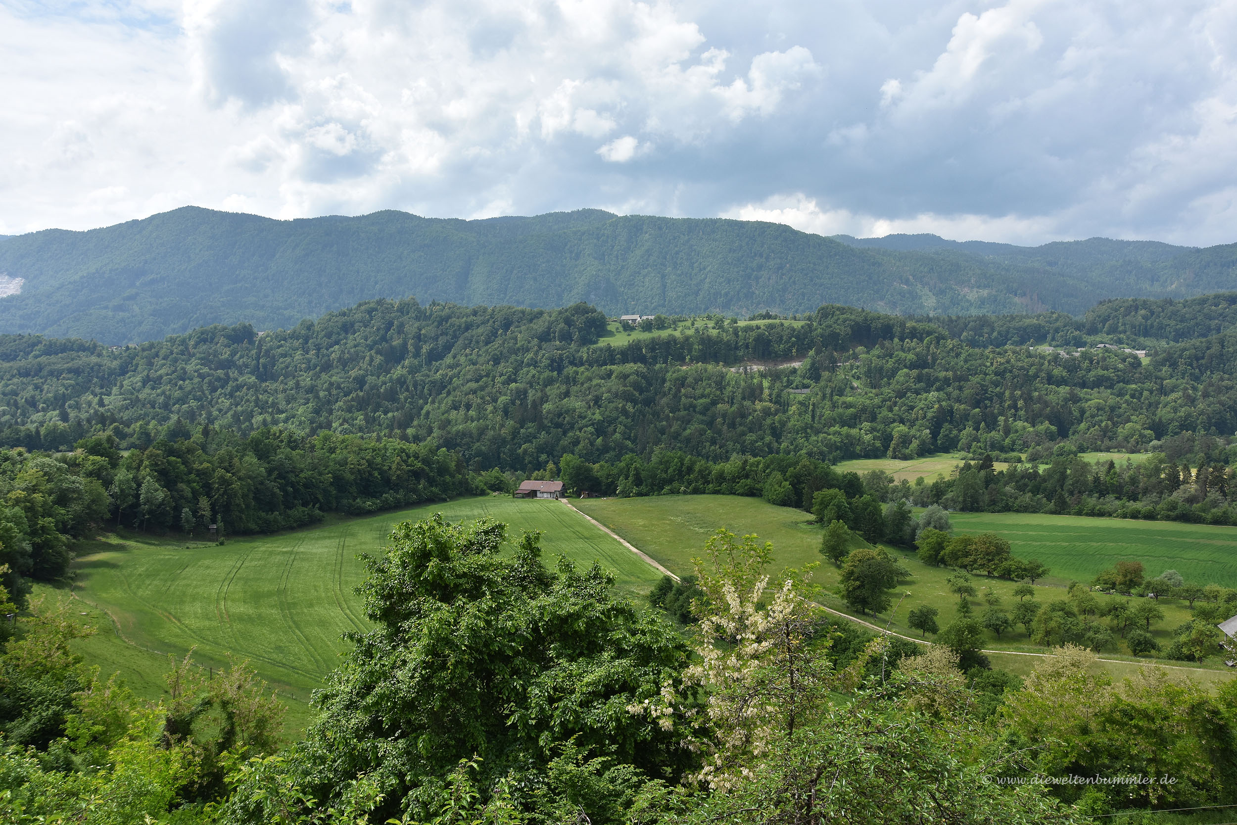 Anschließend hatten wir wieder eine etwas längere Fahrt vor, denn wir wollten auch gerne zum geografischen Mittelpunkt von Slowenien, da ich ja geografische Mittelpunkte sammle. Und dieser fehlte mir noch. Der Mittelpunkt befindet sich östlich von Ljubljana, was wiederum bedeutete, dass wir erneut durch die Hauptstadt fahren mussten. Gut, so groß ist die Stadt nicht und es war kein großes Problem. Aber man merkte schon, dass diese Hin- und Herfahrerei ein wenig blöd war. Und das alles wegen der schlechten Wetterprognose. Das lange angekündigte Gewitter blieb übrigens immer noch aus, worüber wir aber überhaupt nicht traurig waren.