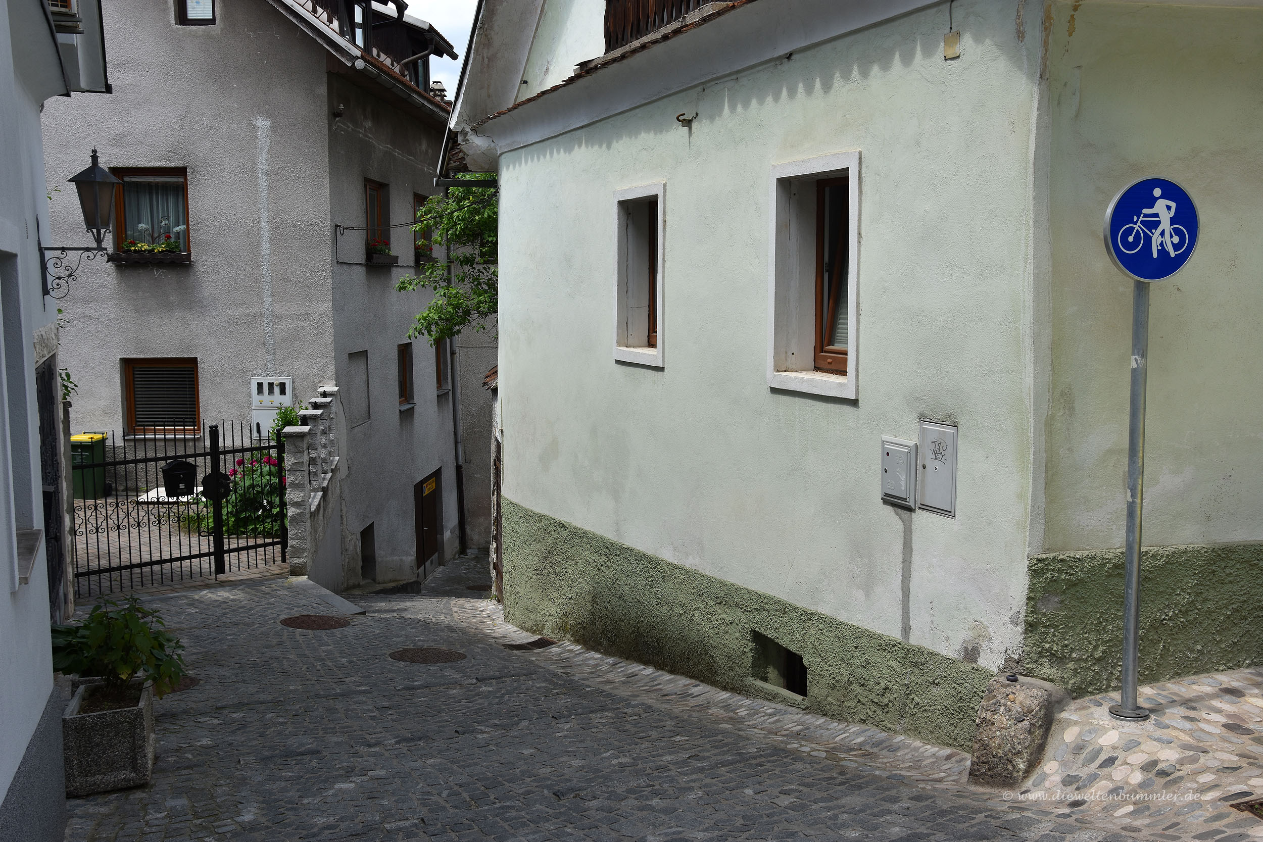 Aber Radovljica lohnte sich. Es ist zwar wirklich nur ein kleines Örtchen und die Altstadt besteht auch nur aus einer gerade mal 300 Metern langen Fußgängerzone. Aber das Städtchen ist vielleicht gerade deswegen richtig putzig. Sollte man zumindest mal kurz angehalten und durchgeschlendert sein. Sehr schön übrigens auch der Mini-Skywalk in einer der Seitengassen. Er ist genauso niedlich wie der gesamte Ort. Hier wäre ein Wohnmobilstellplatz am Vorabend auch nett gewesen. Aber wir wussten ja, dass es keinen gab.