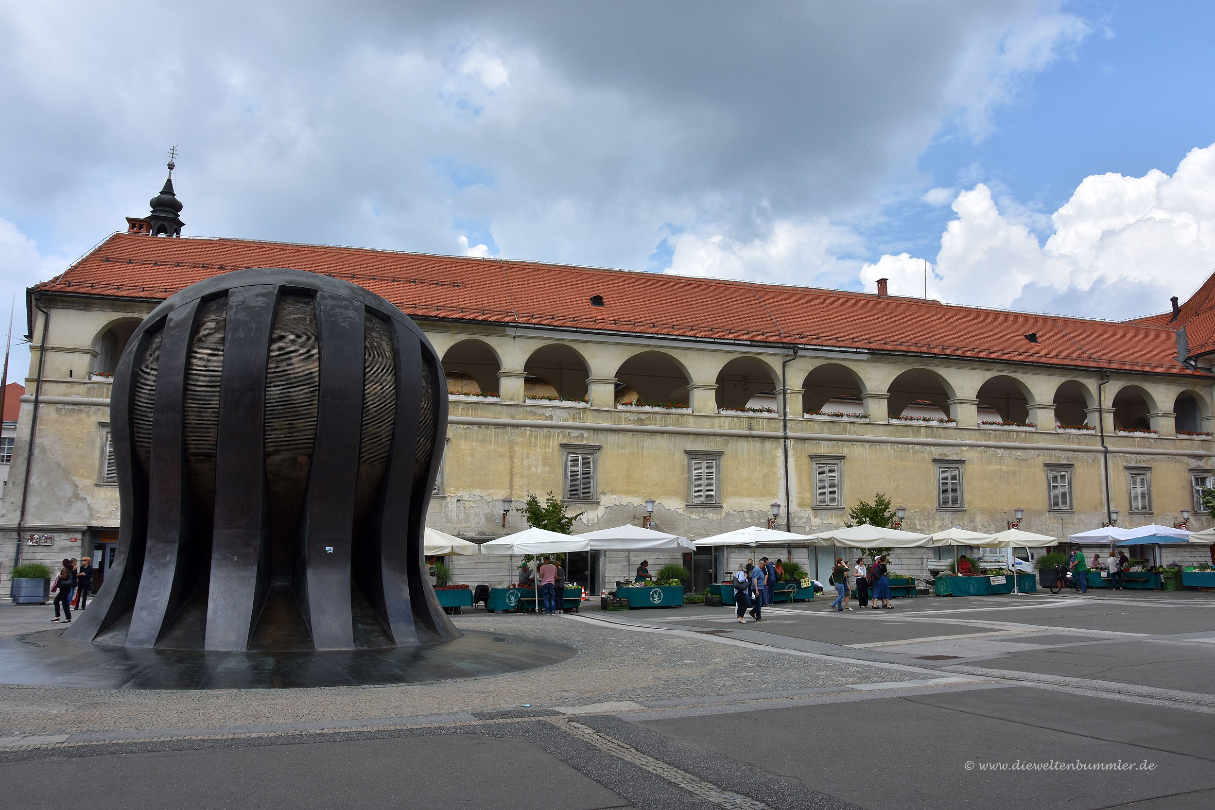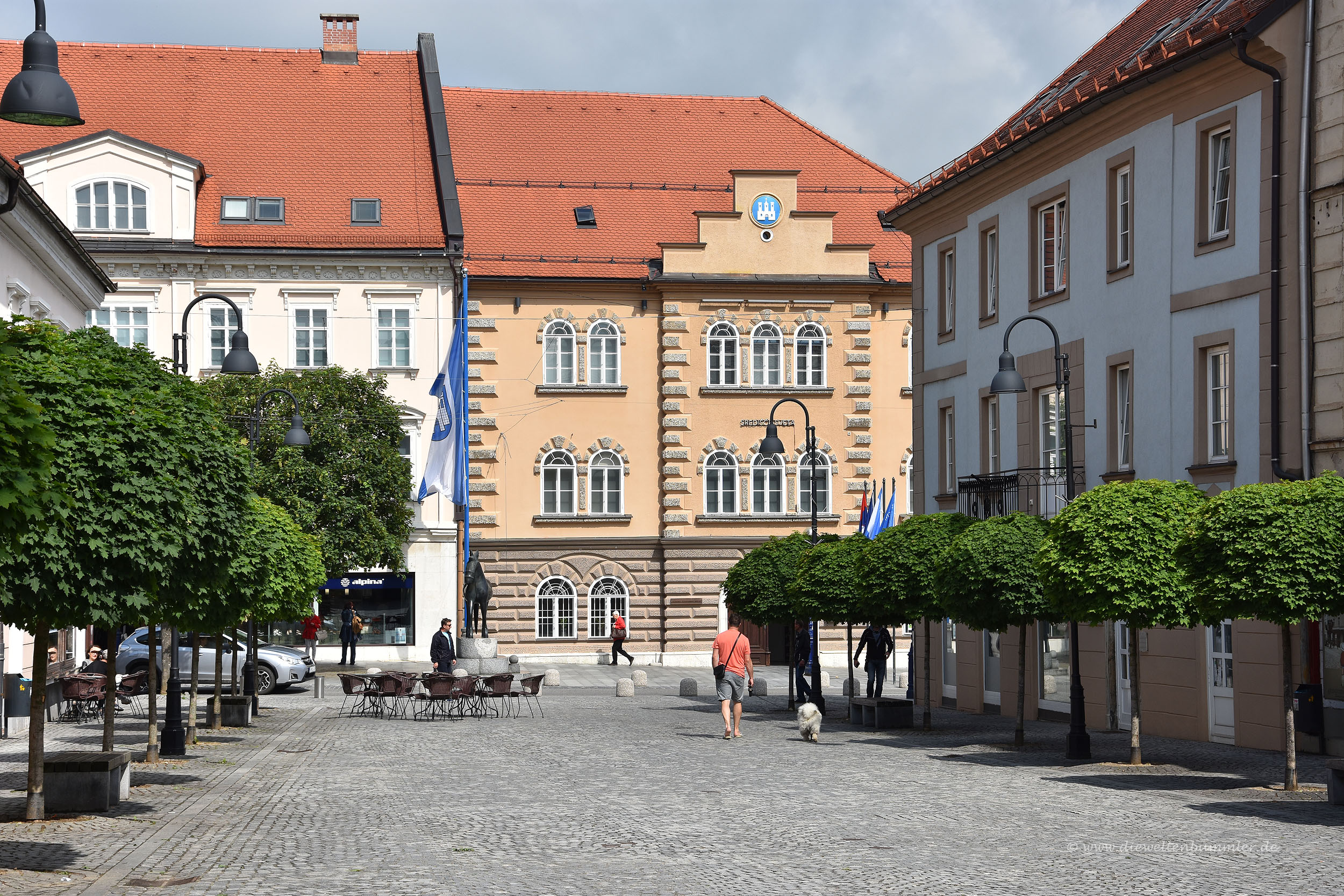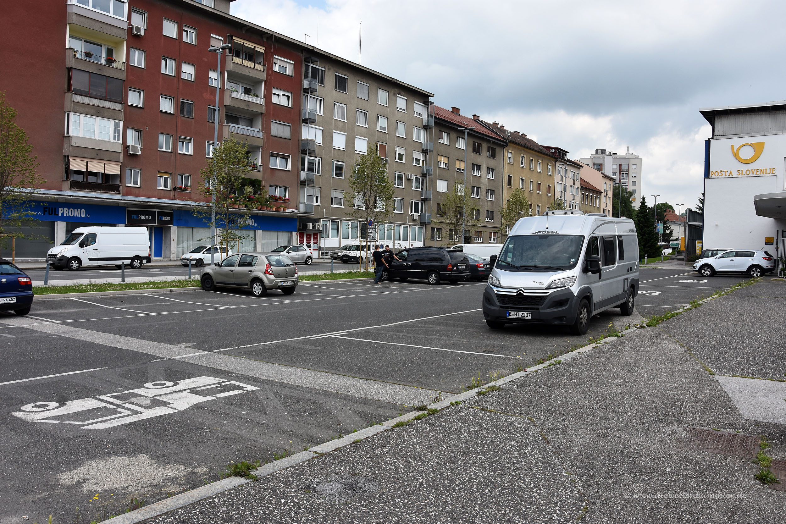 In der zweitgrößten Stadt von Slowenien fuhren wir direkt zum Busbahnhof, weil es dort einen Wohnmobilstellplatz gibt. Allerdings wollten wir nicht übernachten, sondern nur für eine Stadtbesichtigung parken – so der Plan. Der Busbahnhof hat eine Schranke und aus dem Schrankenhäuschen kam auch gleich ein Wärter, der uns freundlich erklärte, dass wir hier nicht parken dürften. Übernachten wäre okay, gegen eine Gebühr von 10 Euro. Aber nur parken sei nicht gestattet. Wir fanden das seltsam, denn oftmals ist es ja genau umgekehrt, nämlich so dass man zwar parken aber eben nicht übernachten dürfe.