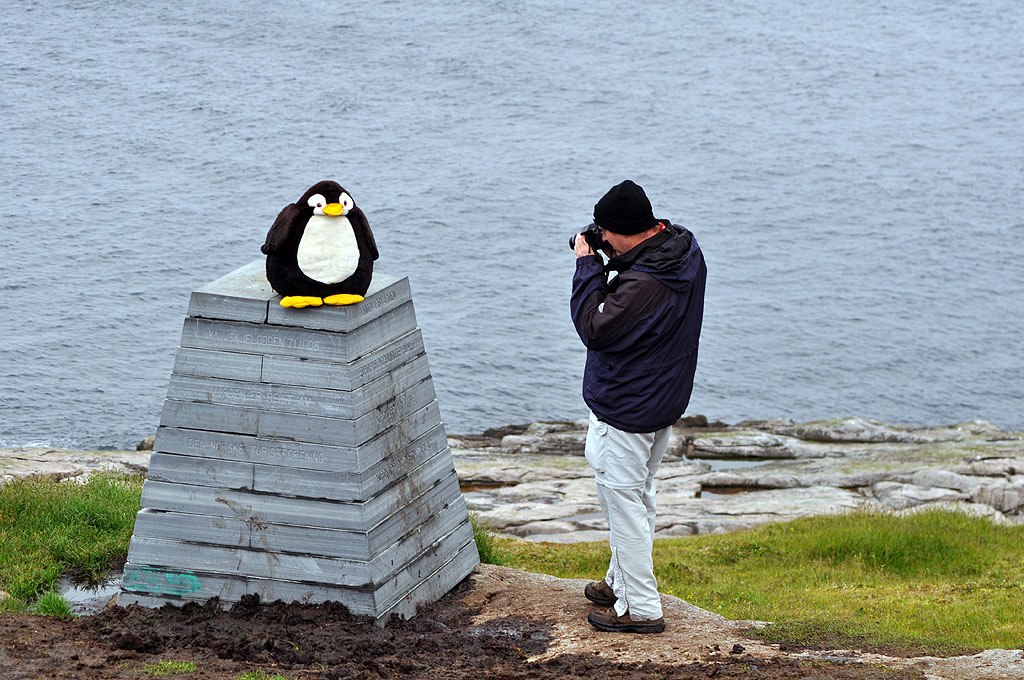 Tja, und irgendwann trifft man auf eine Markierung in Form einer Holzkiste, die den nördlichsten Punkt Europas markiert. Wer einen übergroßen Stoffpinguin mit sich herumschleppt, macht hier ein Foto, trägt sich im Gästebuch ein und begibt sich dann wieder auf den Rückweg. Mit diesem Punkt ist man ungefähr 1.600 Meter nördlicher als der Nordkapp-Globus. Allerdings kann man das kaum erkennen, wenn man auf die benachbarte Halbinsel rüberschaut und den dortigen Touristen zuwinkt. Es wirkt beinahe so, als wäre man auf gleicher Höhe. Wer zum Abschluss der Wanderung noch mag, fährt zum Campingplatz in Honningsvåg und lässt sich dort eine Urkunde über den Besuch von Knivskjellodden ausstellen. So heißt nämlich der nördlichste Punkt Europas. Wer mich kennt, der weiß, dass ich mag. Also gab es für mich, zusätzlich zum Nordkapp-Diplom, auch eine Urkunde.
