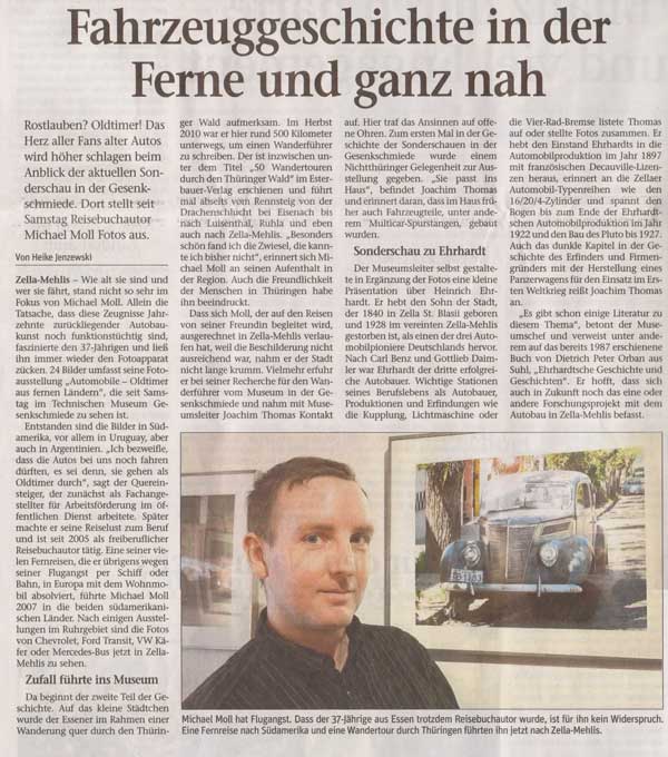 Die Gesenkschmiede in Zella-Mehlis ermöglichte mir meine erste Ausstellung außerhalb von Nordrhein-Westfalen und zugleich auch die erste Galerie in einem Museum, was die Gesenkschmiede in der thüringischen Stadt eben auch ist. Passend zu dem Museum, einer alten Autoteile-Fabrikationsstätte wurden die Oldtimer aus Südamerika gezeigt.