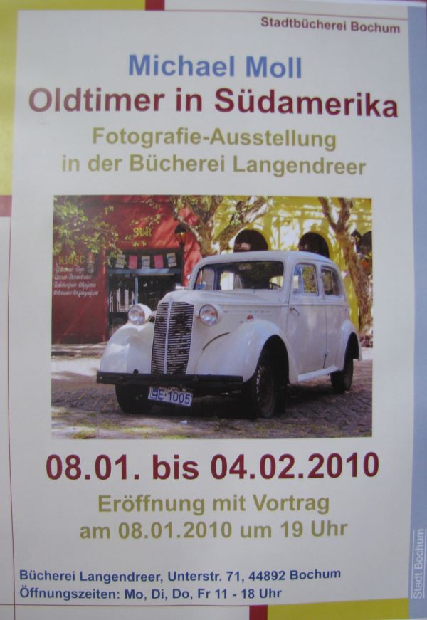 Wie schon in Essen fand zur Eröffnung in Bochum ein Reisevortrag statt. Gezeigt wurden Oldtimer aus Argentinien und Uruguay, während sich die Zuschauer für fast zwei Stunden auf eine spannende Reise nach Südamerika entführen ließen.