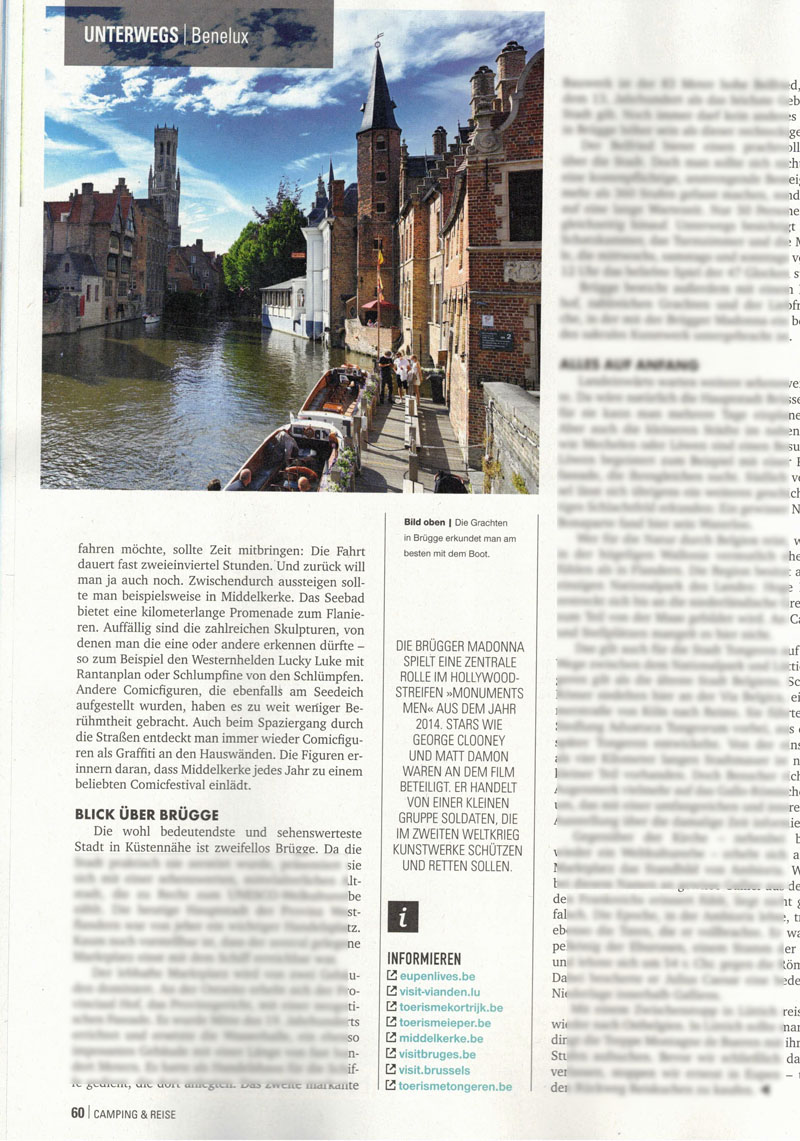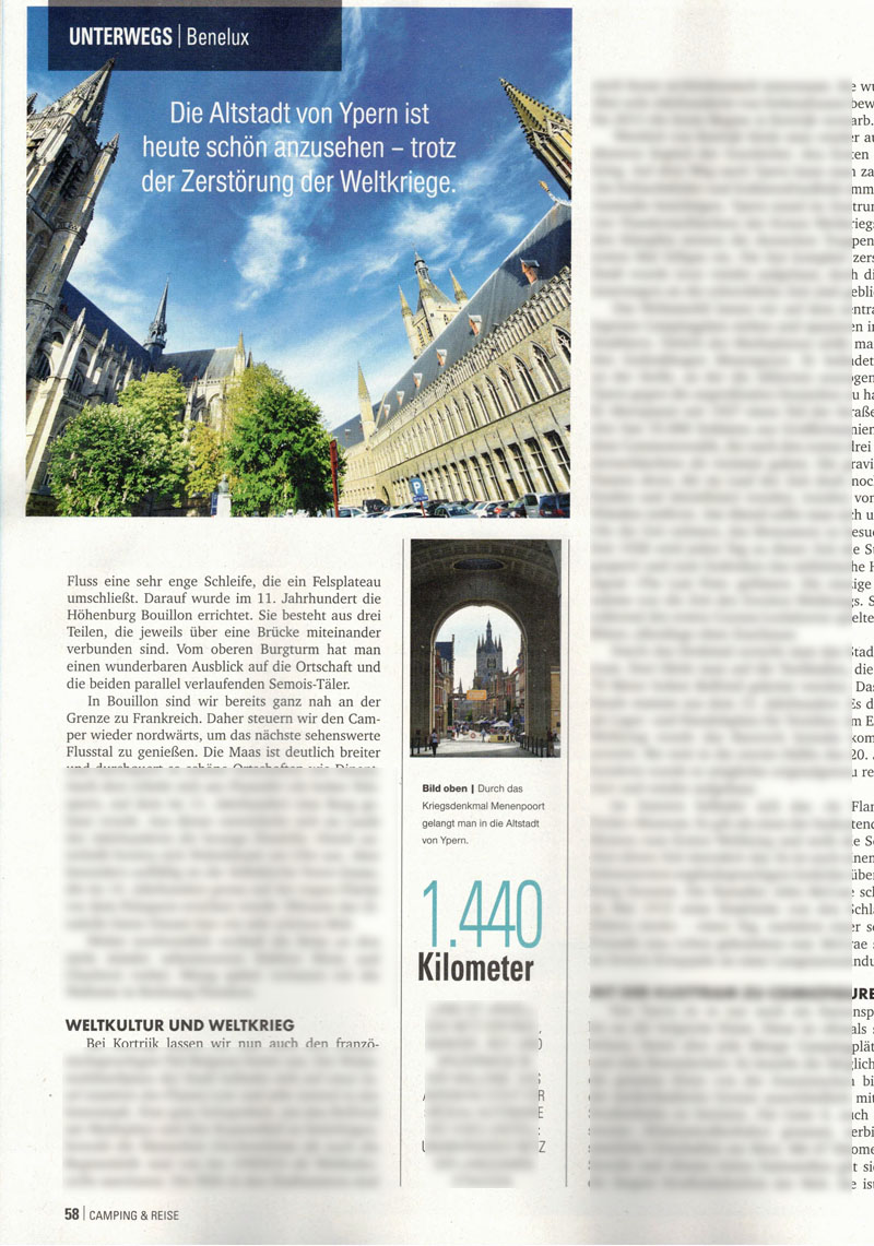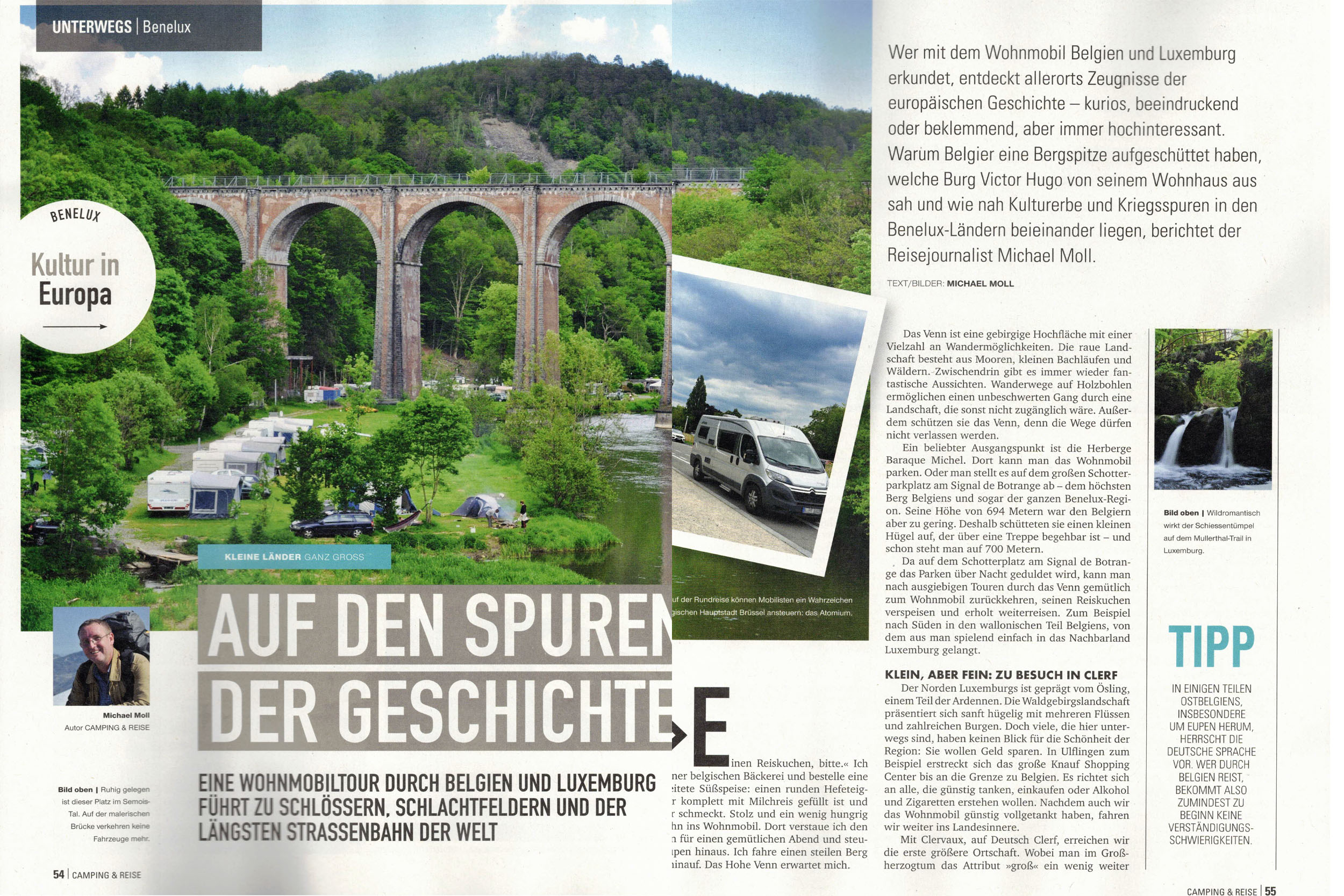 Nach dem umfangreichen und informativen Artikel in der Ausgabe 6/2021 des Camping & Reise-Magazins über Wohnmobiltouren durch die Niederlande folgte in der Ausgabe 2 des Jahres 2022 der zweite Teil. Und zwar ging es dieses Mal zu den beeindruckenden und manchmal auch beklemmenden Orten in Belgien und nach Luxemburg. Wie es ja schon bei der Niederlande passenderweise dazu auch einen kompletten Wohnmobilreiseführer gibt, so können Reiseinteressierte auch in Sachen Belgien und Luxemburg einen umfangreichen Reiseführer mit zahlreichen detaillierten Informationen und Angaben zu Wohnmobilstellplätzen dazu erwerben.