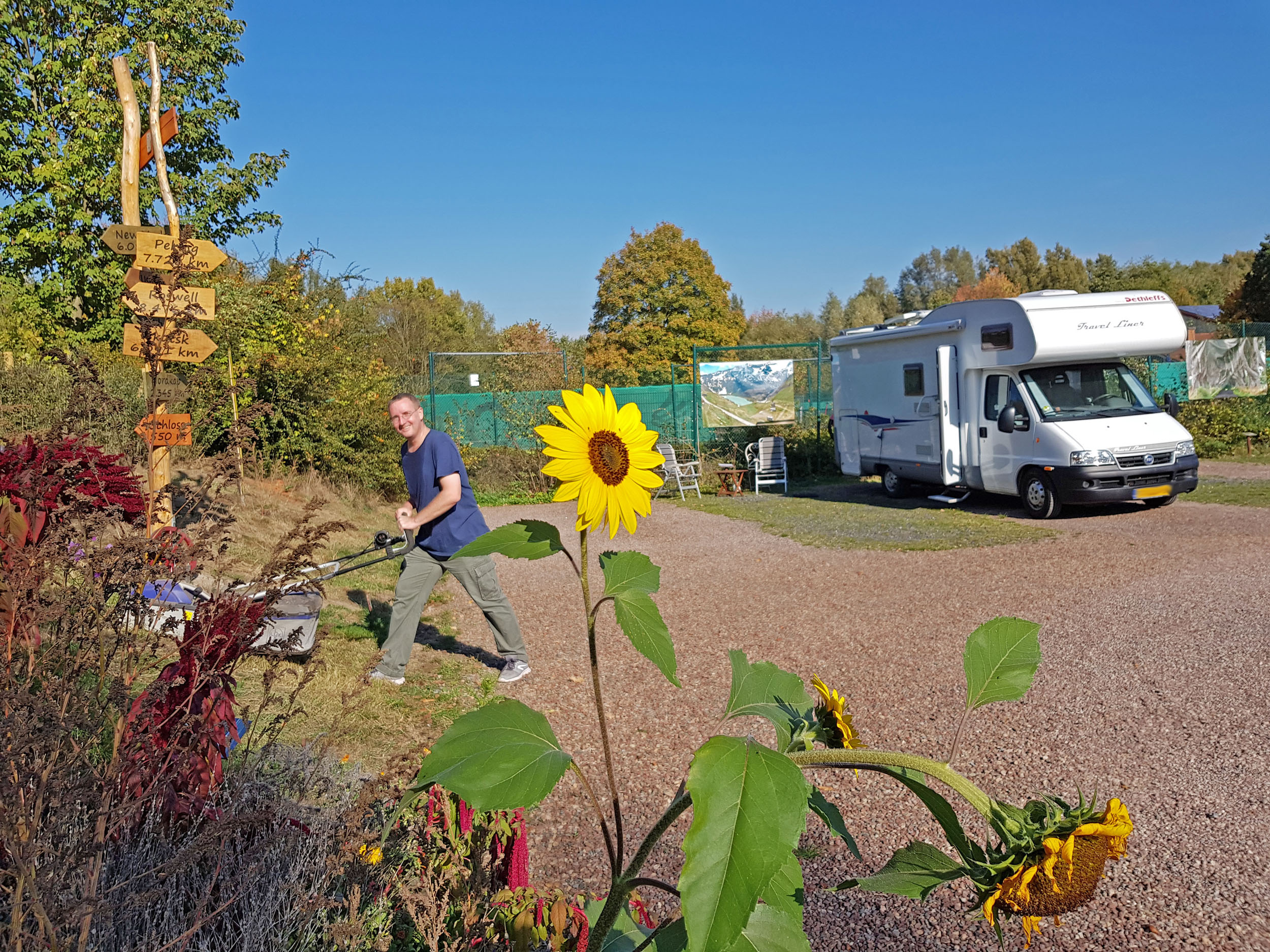 Doch nun haben wir Herbst und es wird an der Zeit, dem Wall mit dem Rasenmäher ans Eingemachte zu gehen. Immerhin wollen wir im kommenden Frühjahr den Wall mit zahlreichen Blumen und Pflanzen schön bepflanzen.