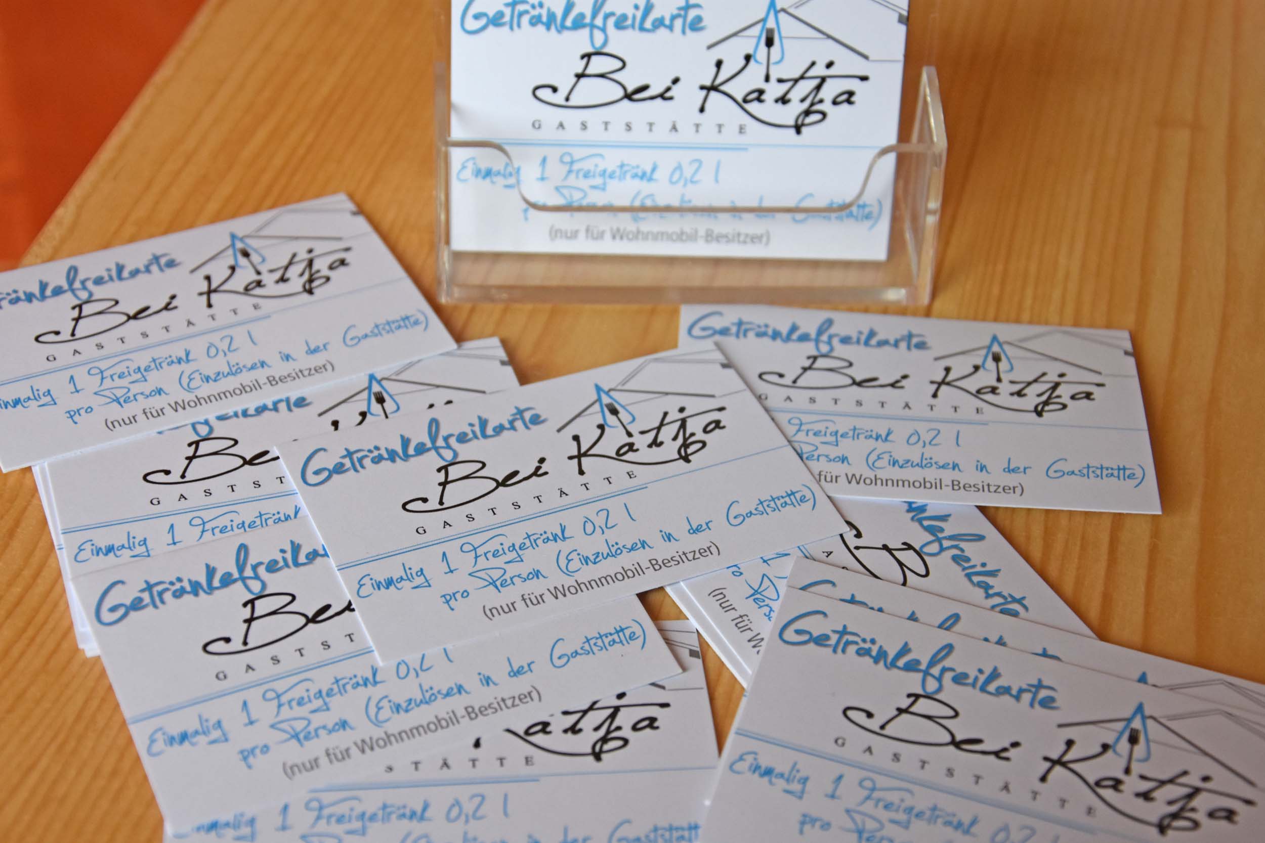 Nur 50 Meter von unserem Stellplatz entfernt befindet sich die Gaststätte „Bei Katja“ mit ihrer Außenterrasse. Gäste, die bei uns übernachten, erhalten ab sofort bei Katja einen Gutschein für ein Freigetränk (0,2 l) pro Person.