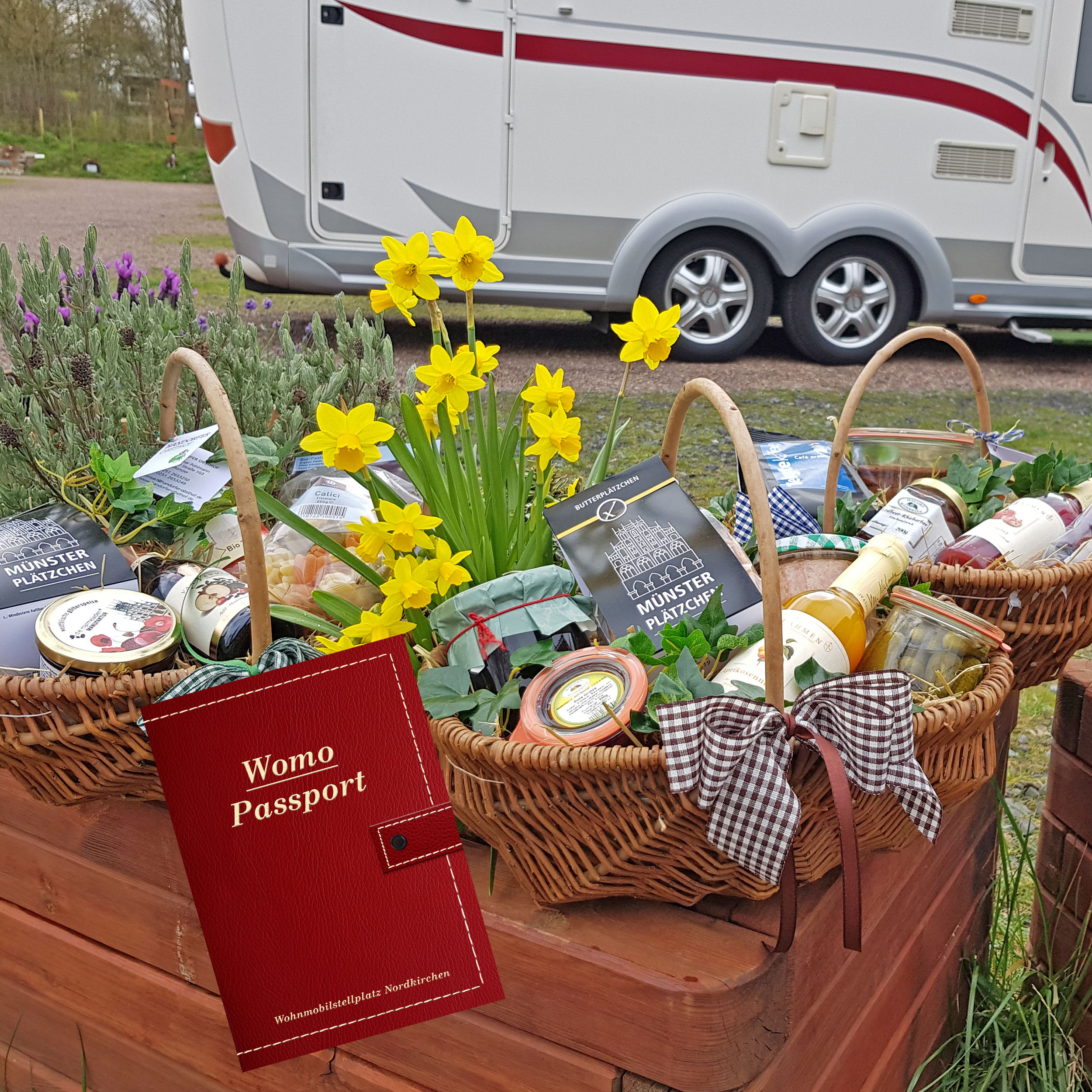 Unser Womo-Passport erfreut sich großer Beliebtheit. Mit ihm erhält man bei uns Gratis-Übernachtungen, Reiseführer und Präsentkörbe. Die Präsentkörbe bekommt jede Wohnmobilbesatzung, die ein Heft komplett gefüllt hat. In den letzten Wochen haben wir gleich drei dieser Körbe herausgegeben.